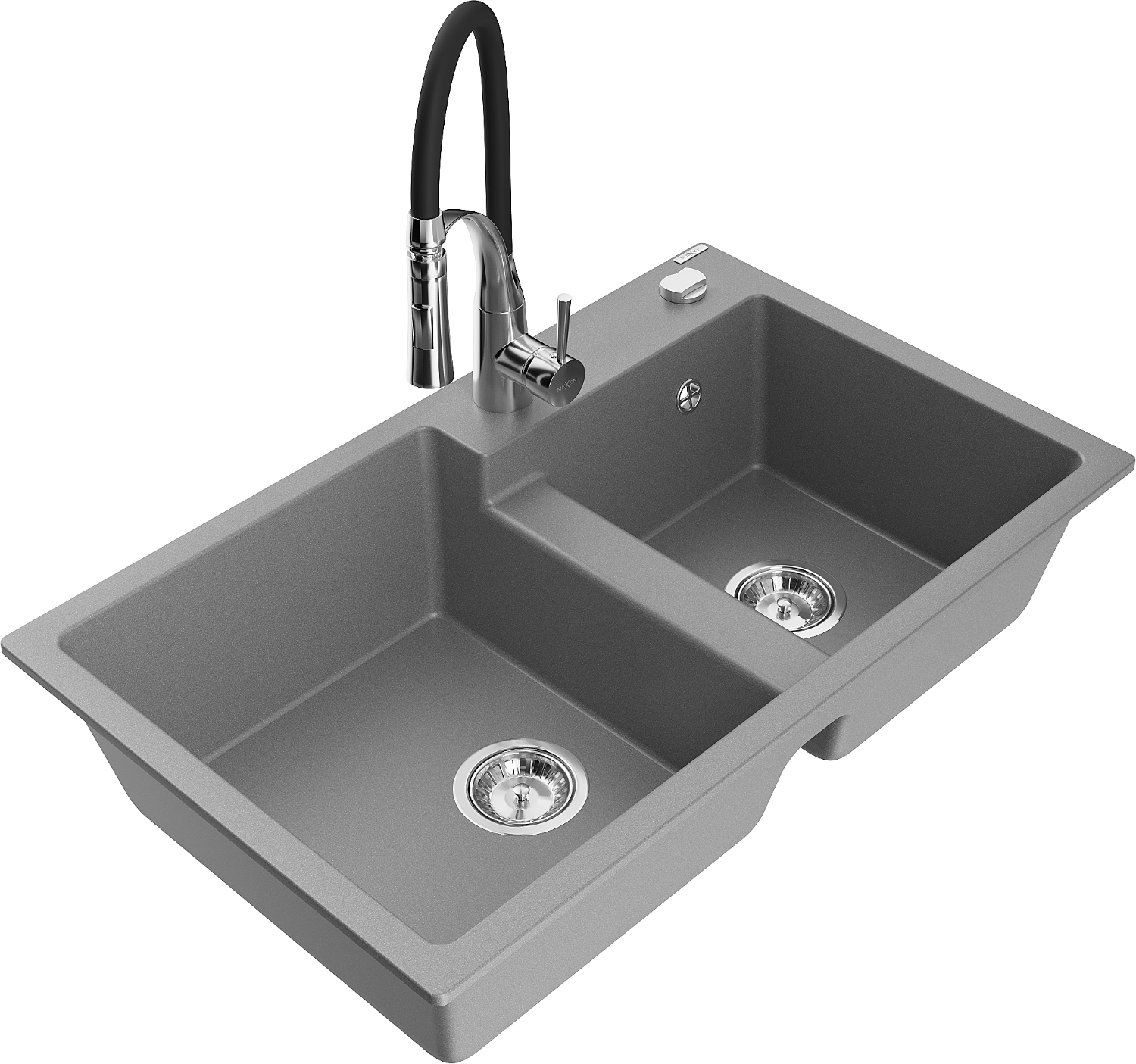 Mexen Tomas granitový dřez 2-komorový s kuchyňskou baterií Aster, šedý - 6516-71-73450-07