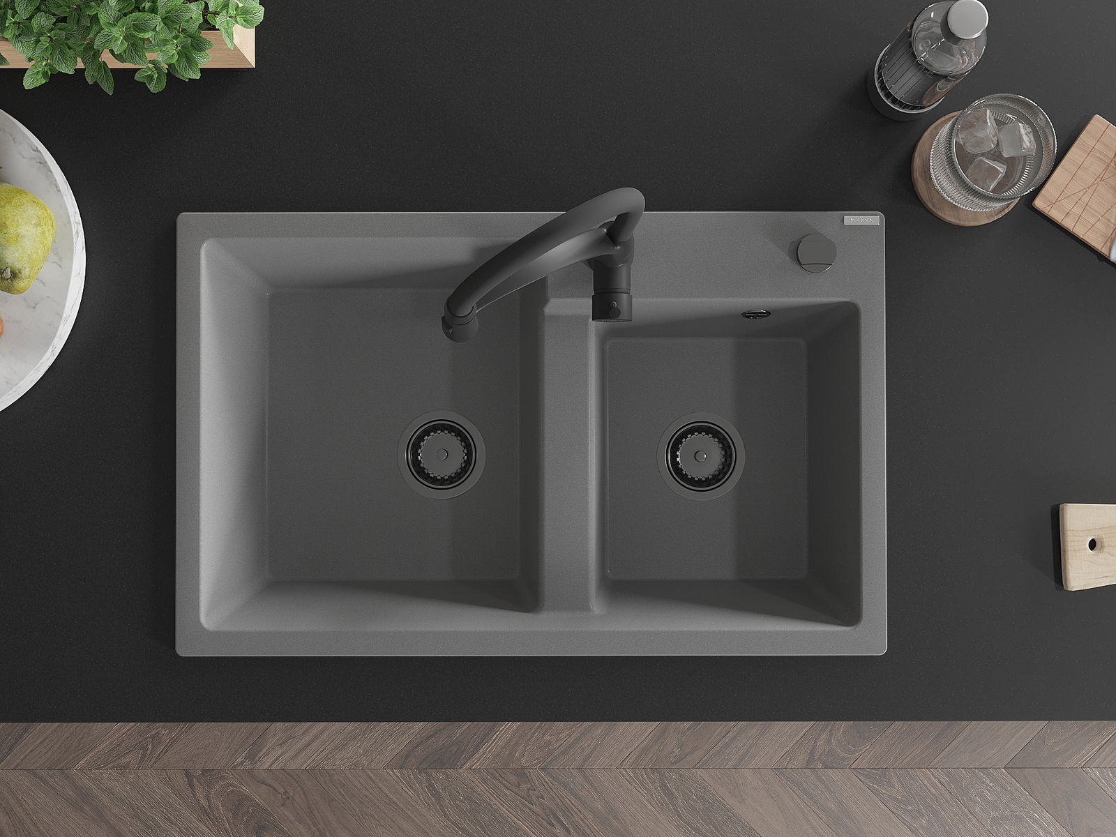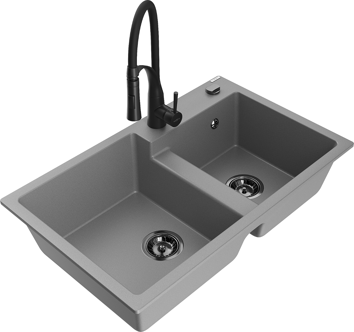 Mexen Tomas granitový dřez 2-komorový s kuchyňskou baterií Aster, šedý - 6516-71-73450-70-B