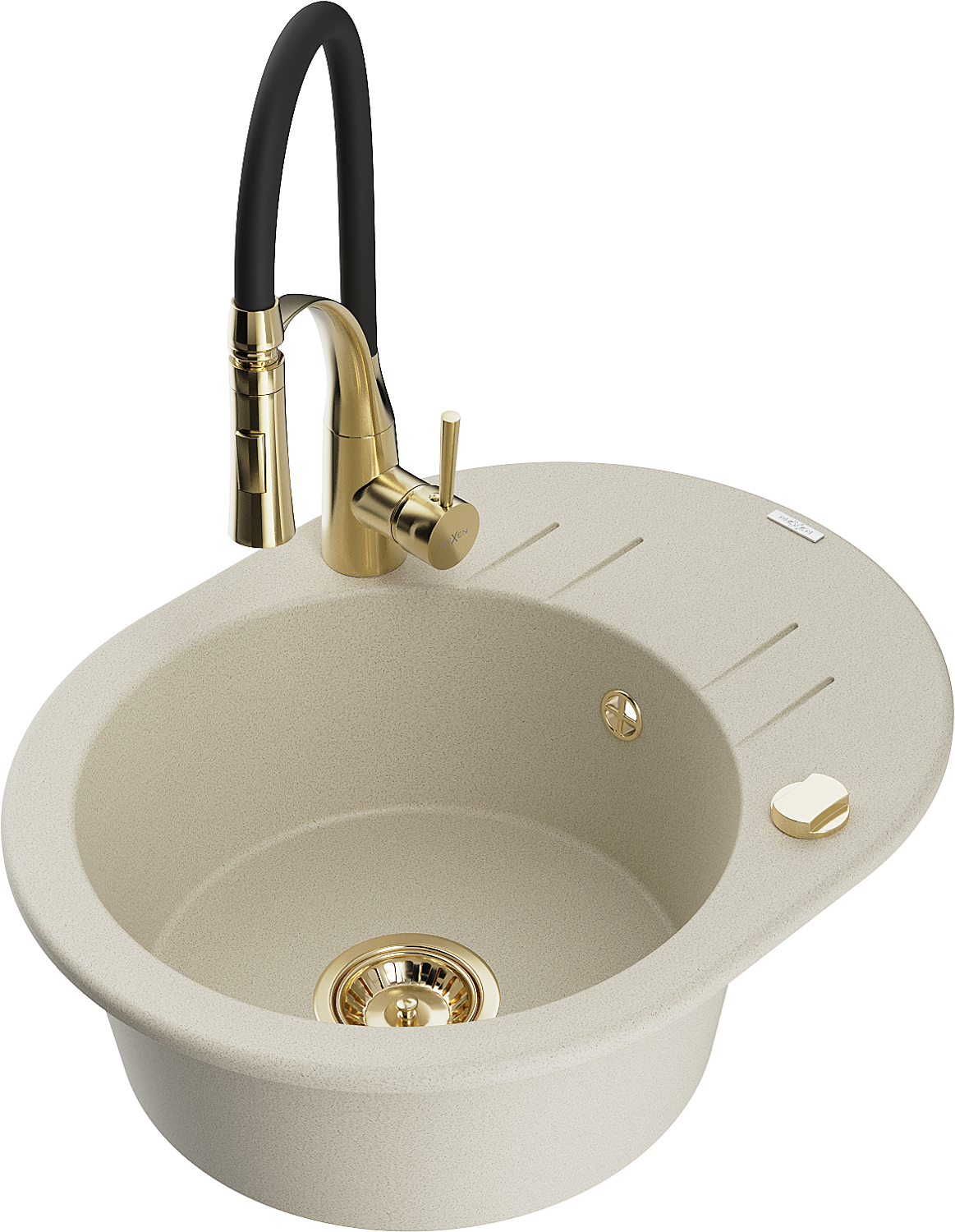 Mexen Kevin granitový dřez s 1 komorou a odkapávačem a kuchyňskou baterií Aster, béžový - 6517-69-73450-57-G