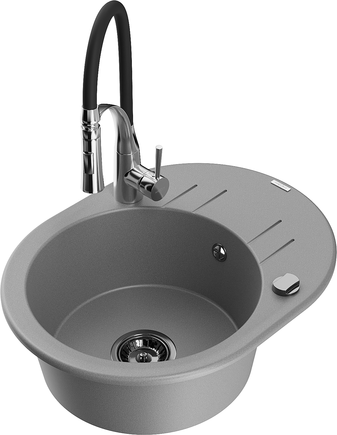 • Mexen Kevin jednokomorový žulový dřez s odkapávačem a kuchyňskou baterií Aster, šedý - 6517-71-73450-07-B