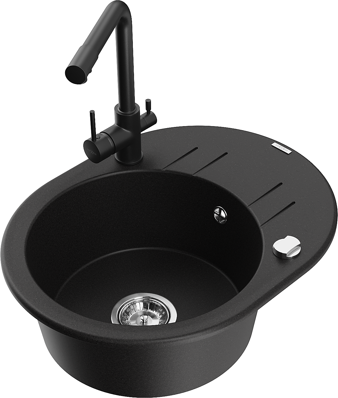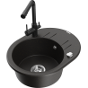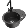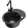 Mexen Kevin granitový dřez 1-komorový s odkapávačem a kuchyňskou baterií Duero, černý - 6517-77-671600-70