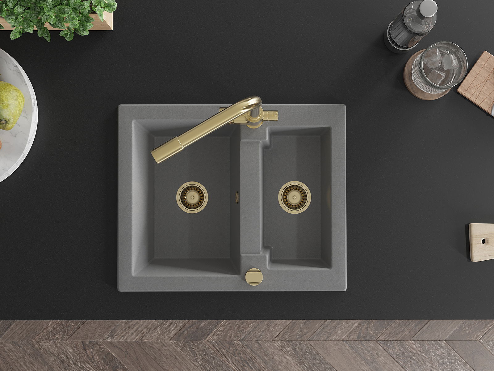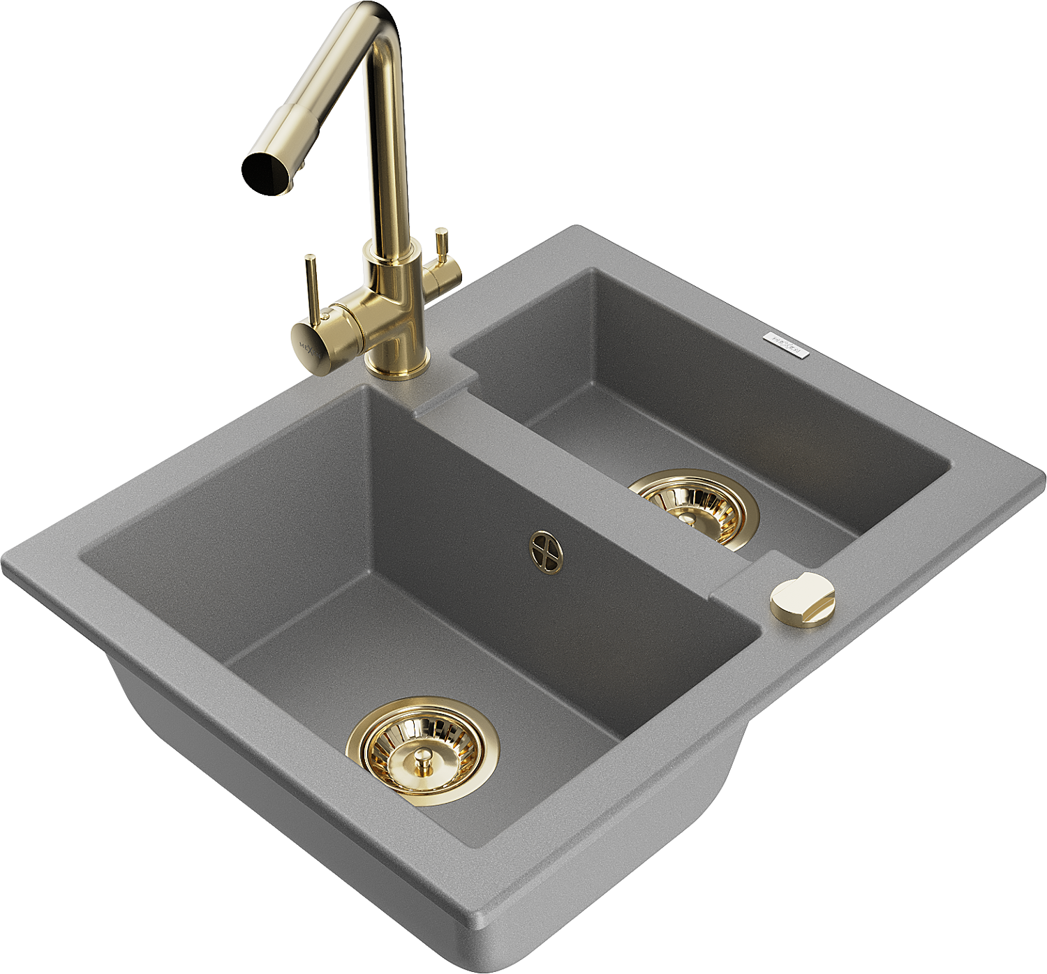Mexen Carlos granitový dřez 1,5-komorový s kuchyňskou baterií Duero, šedý - 6518-71-671600-50