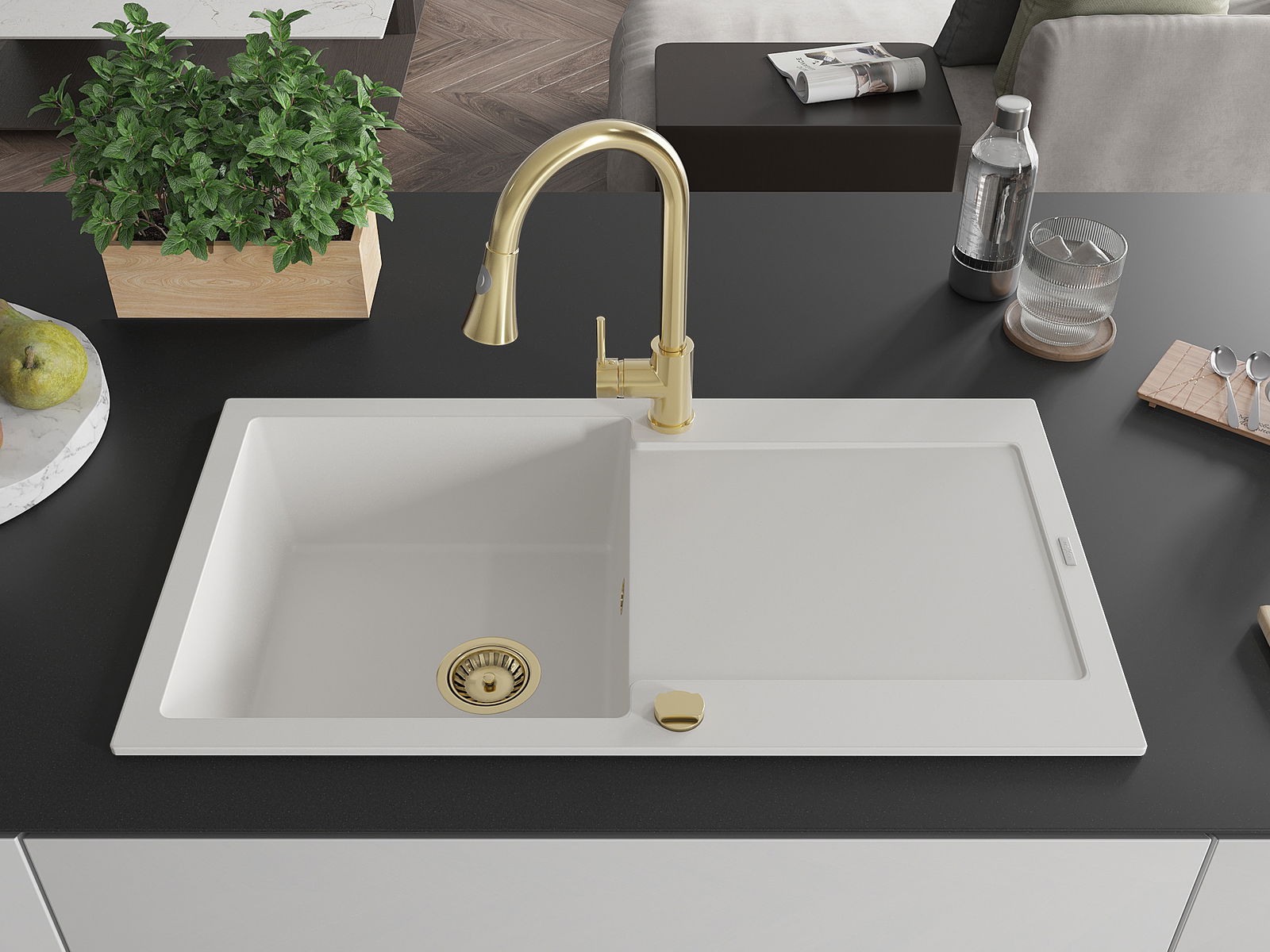 Dřez byl vyroben z vysoce kvalitního granitu. Představuje elegantní a především praktický doplněk každé kuchyně, bez ohledu na její styl. Vysoká kvalita a trvanlivost granitu zajišťují dlouholeté používání.