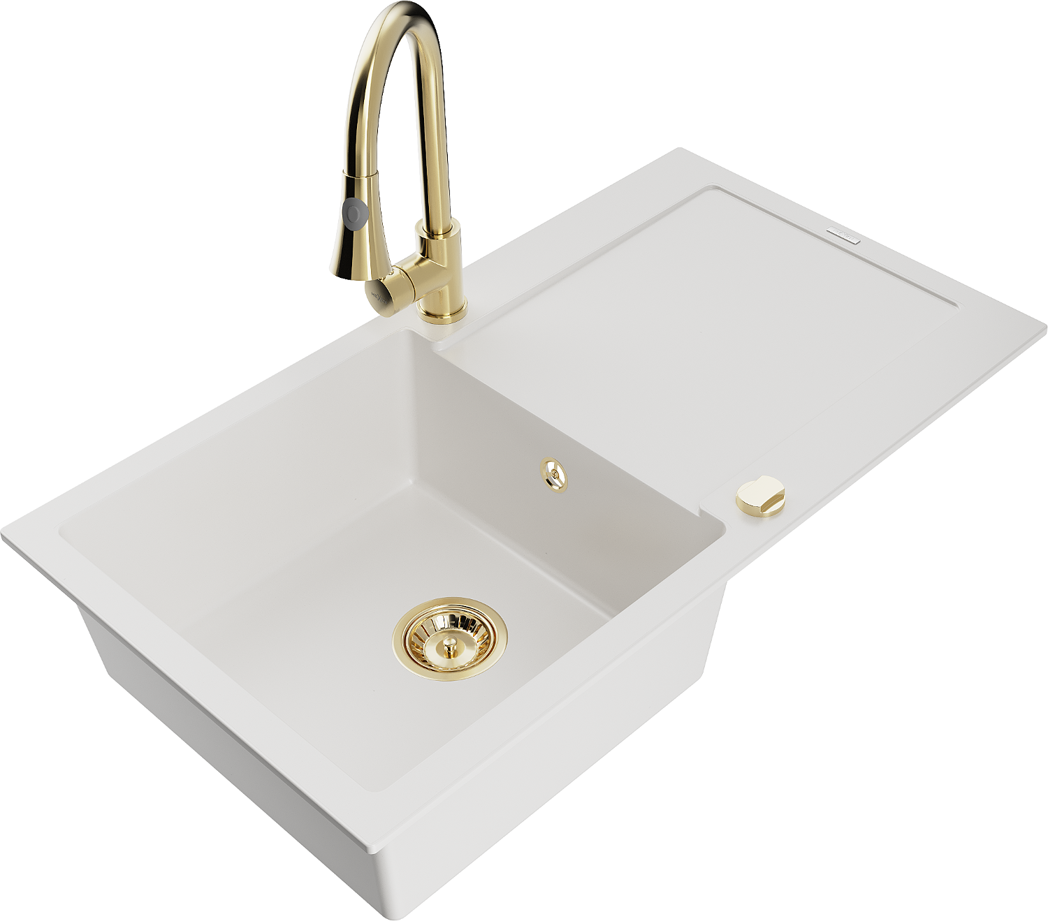 Mexen Leo granitový dřez 1-komorový s odkapávačem a kuchyňskou baterií Elia, bílý - 6501-20-670101-50