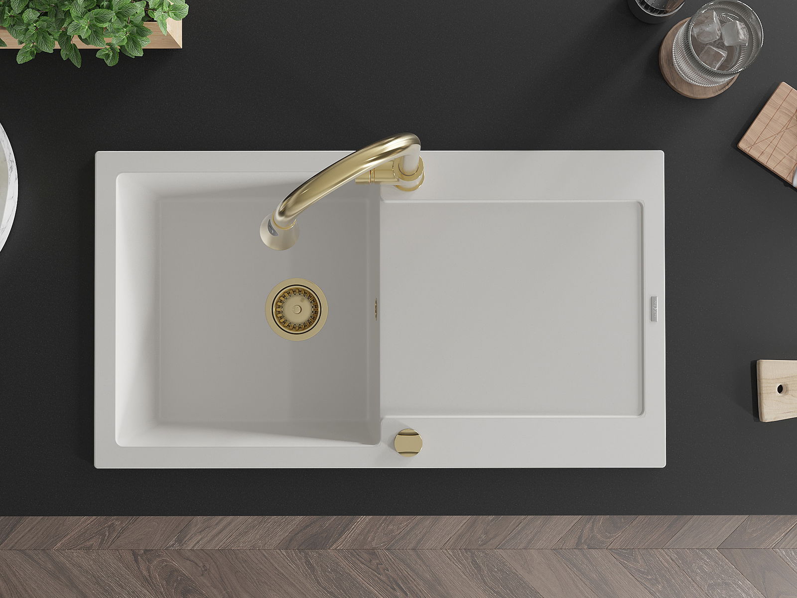 Povrch dřezu je odolný proti skvrnám a zabarvení, což usnadňuje jeho čištění a zachovává jeho barvu po dlouhou dobu používání. Estetický a praktický doplněk každé kuchyně.