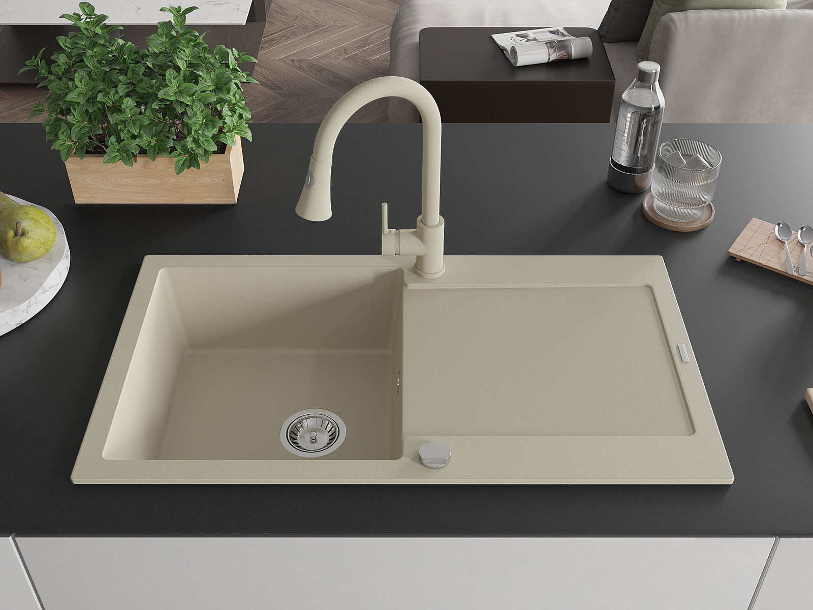Dřez byl vyroben z vysoce kvalitního granitu. Představuje elegantní a především praktický doplněk každé kuchyně, bez ohledu na její styl. Vysoká kvalita a trvanlivost granitu zajišťují dlouholeté používání.