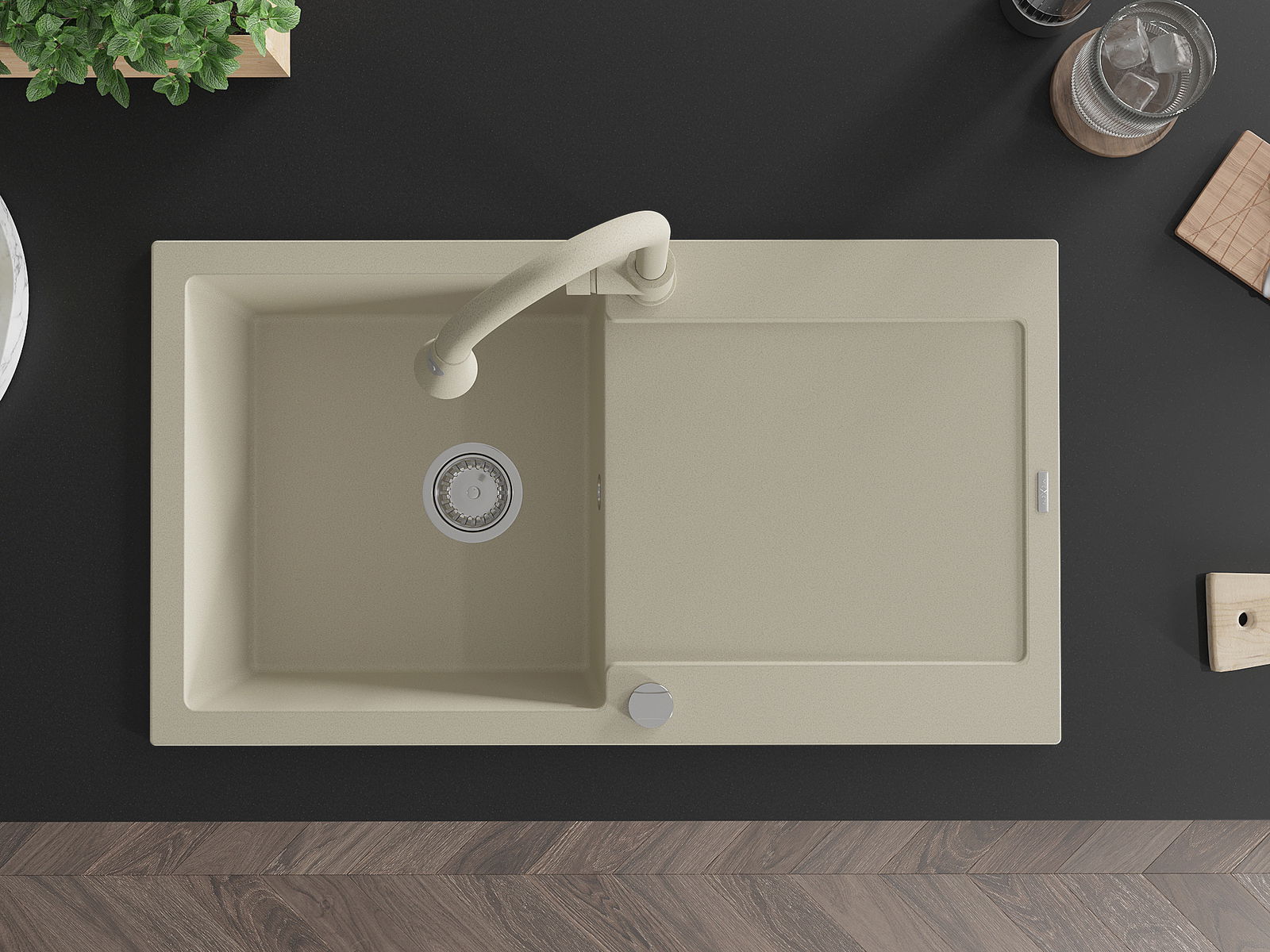 Povrch dřezu je odolný proti skvrnám a zabarvení, což usnadňuje jeho čištění a zachovává jeho barvu po dlouhou dobu používání. Estetický a praktický doplněk každé kuchyně.