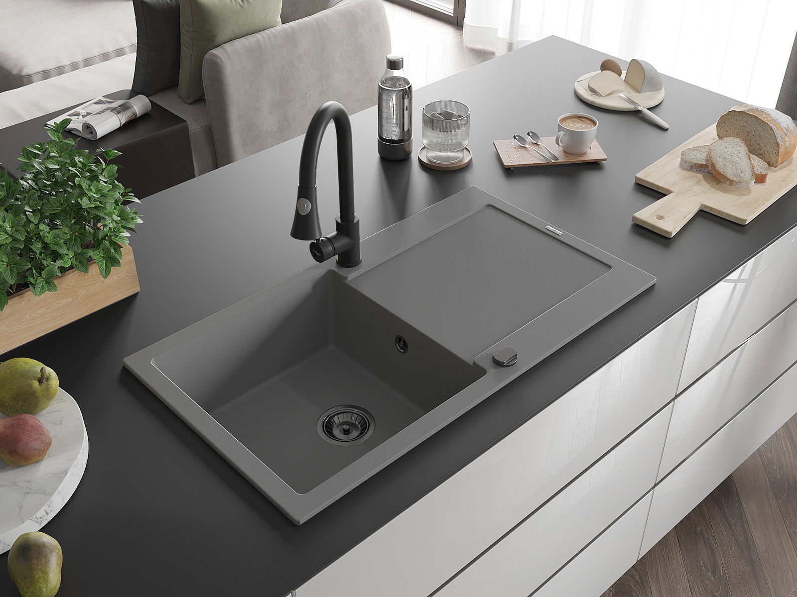 Dřez byl vyroben z vysoce kvalitního granitu. Představuje elegantní a především praktický doplněk každé kuchyně, bez ohledu na její styl. Vysoká kvalita a trvanlivost granitu zajišťují dlouholeté používání.