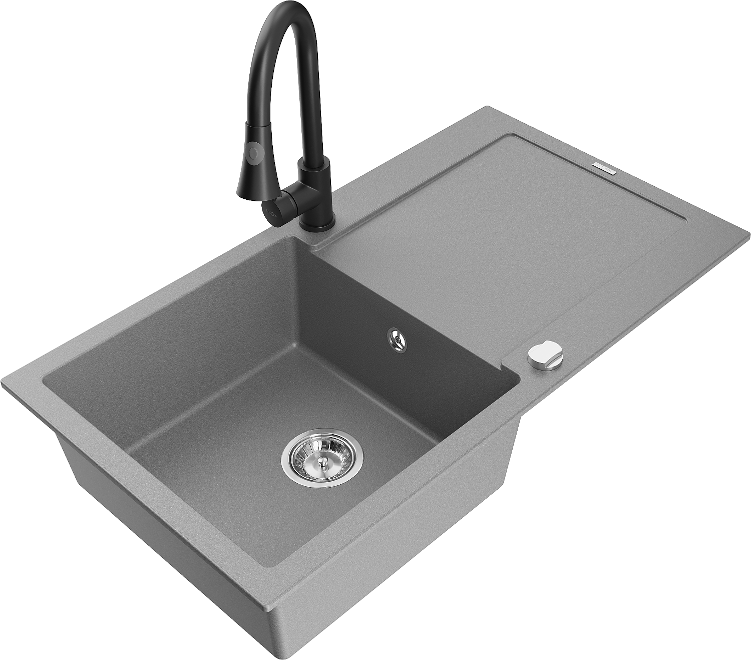Mexen Leo granitový dřez 1-komorový s odkapávačem a kuchyňskou baterií Elia, šedý - 6501-71-670101-70