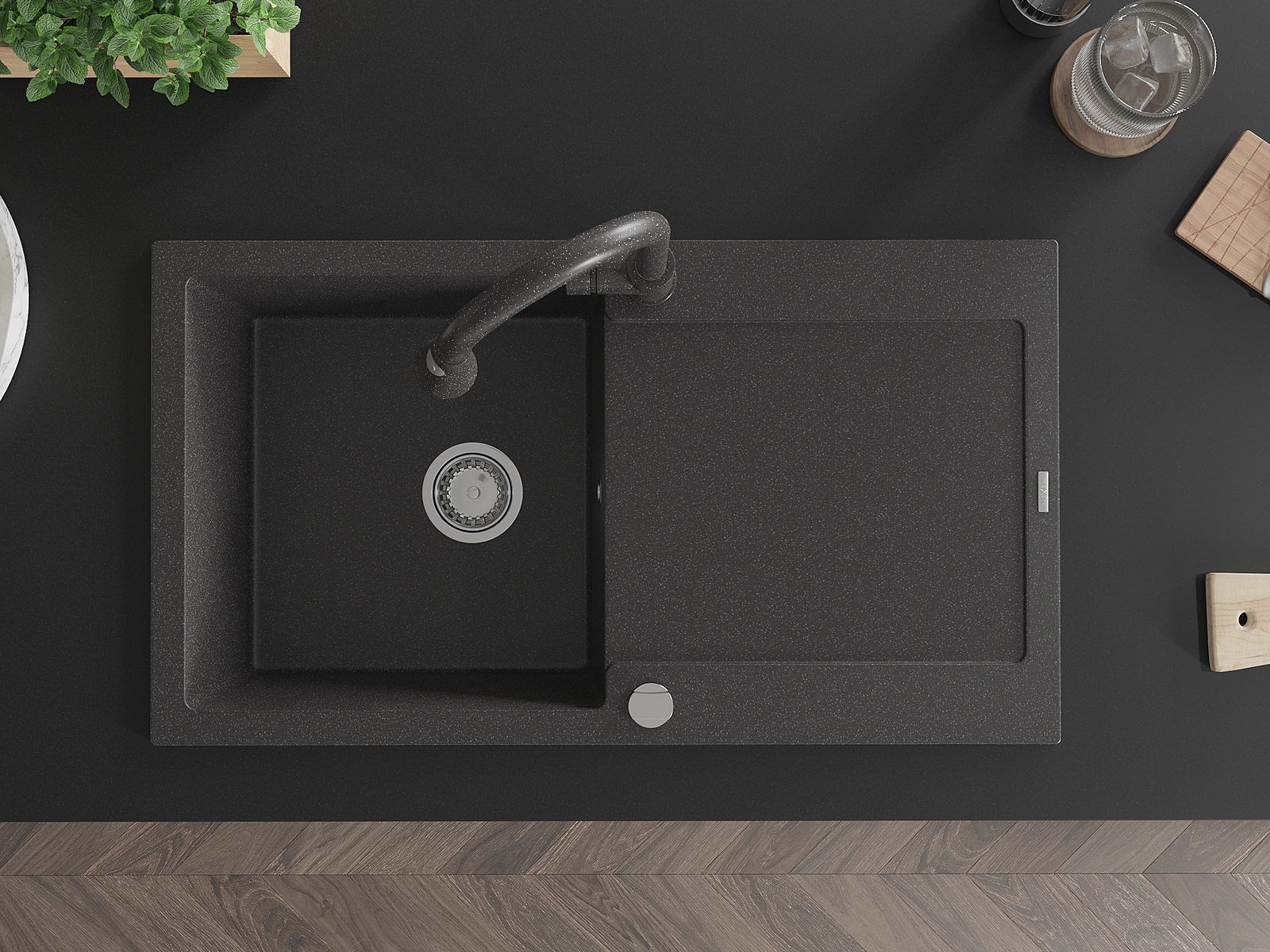 Dřez byl vyroben z vysoce kvalitního granitu. Představuje elegantní a především praktický doplněk každé kuchyně, bez ohledu na její styl. Vysoká kvalita a trvanlivost granitu zajišťují dlouholeté používání.