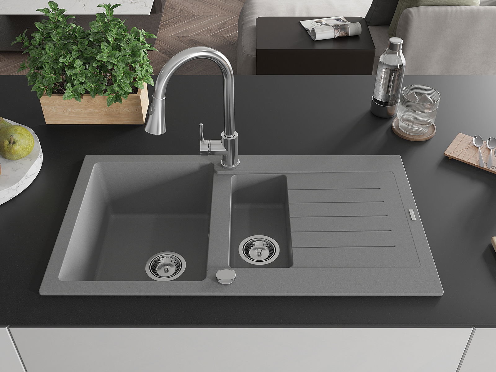 Dřez byl vyroben z vysoce kvalitního granitu. Představuje elegantní a především praktický doplněk každé kuchyně, bez ohledu na její styl. Vysoká kvalita a trvanlivost granitu zajišťují dlouholeté používání.