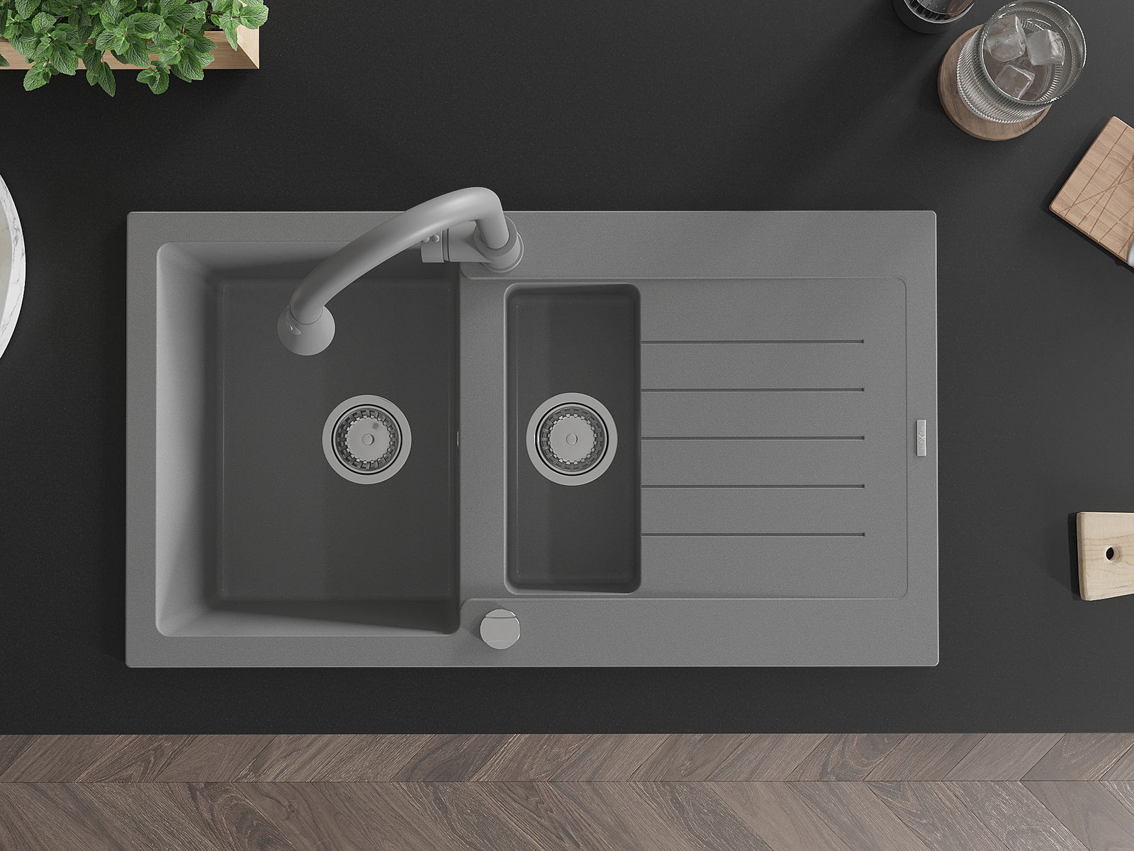 Dřez byl vyroben z vysoce kvalitního granitu. Představuje elegantní a především praktický doplněk každé kuchyně, bez ohledu na její styl. Vysoká kvalita a trvanlivost granitu zajišťují dlouholeté používání.