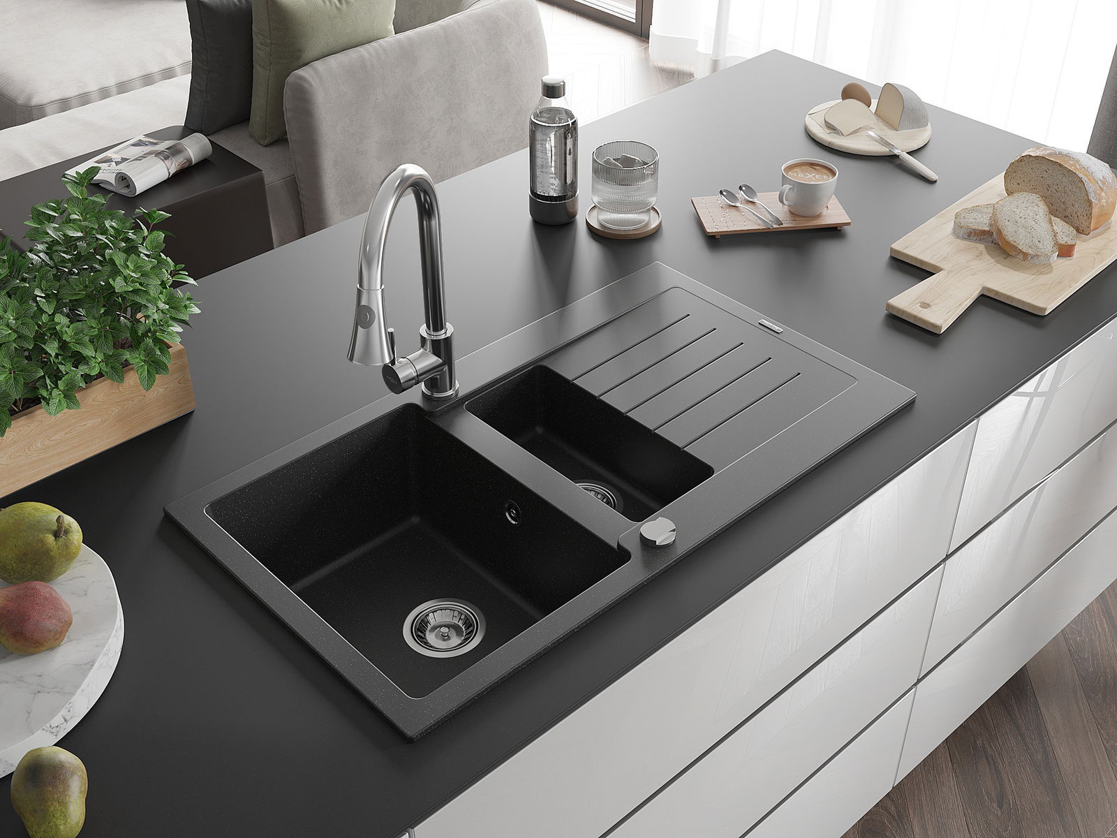 Dřez byl vyroben z vysoce kvalitního granitu. Představuje elegantní a především praktický doplněk každé kuchyně, bez ohledu na její styl. Vysoká kvalita a trvanlivost granitu zajišťují dlouholeté používání.