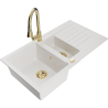 Povrch dřezu je odolný proti skvrnám a zabarvení, což usnadňuje jeho čištění a zachovává jeho barvu po dlouhou dobu používání. Estetický a praktický doplněk každé kuchyně.