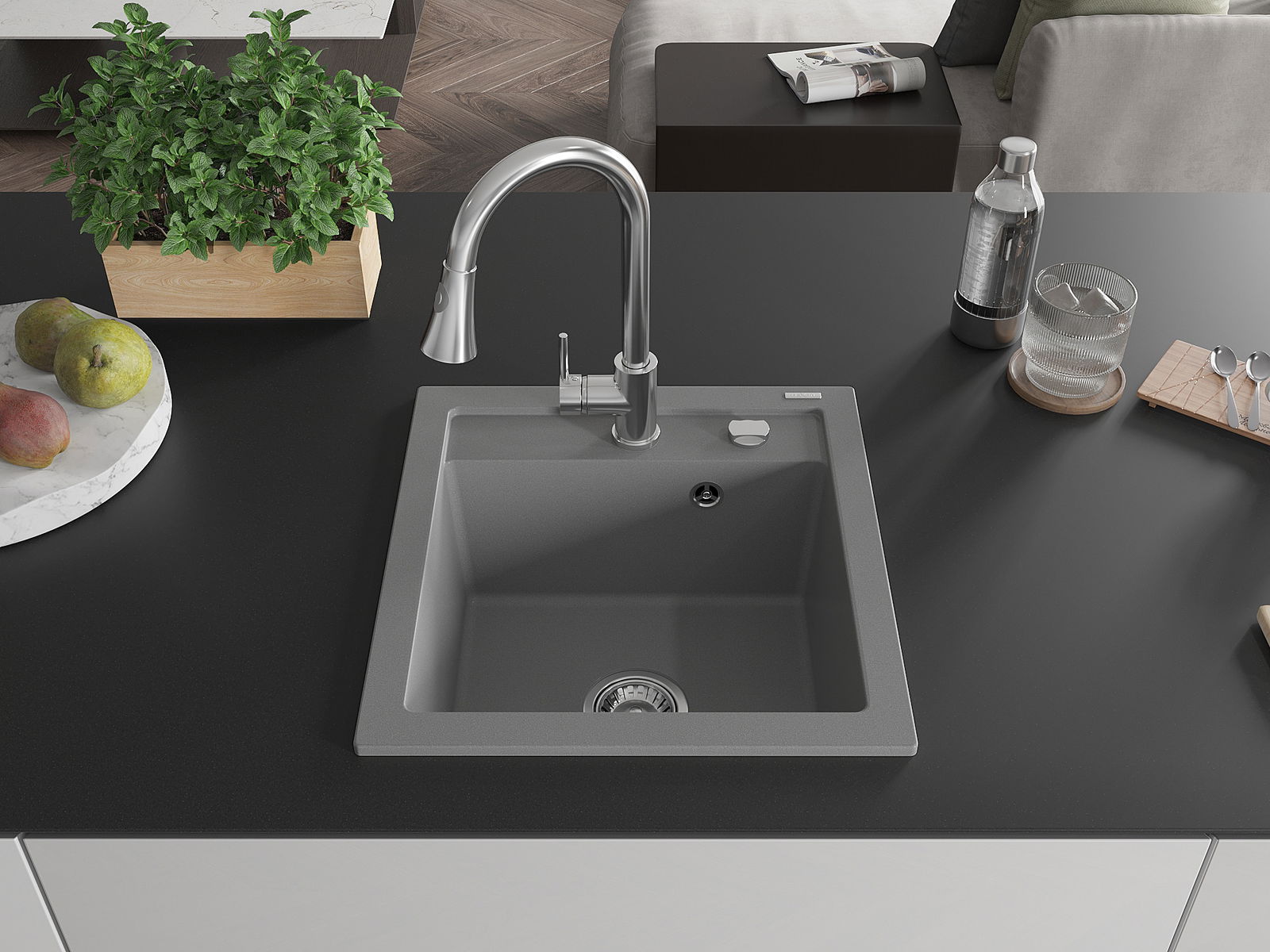Dřez byl vyroben z vysoce kvalitního granitu. Představuje elegantní a především praktický doplněk každé kuchyně, bez ohledu na její styl. Vysoká kvalita a trvanlivost granitu zajišťují dlouholeté používání.