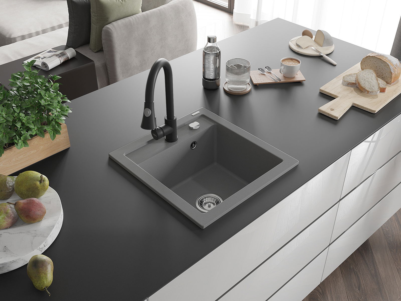 Dřez byl vyroben z vysoce kvalitního granitu. Představuje elegantní a především praktický doplněk každé kuchyně, bez ohledu na její styl. Vysoká kvalita a trvanlivost granitu zajišťují dlouholeté používání.