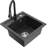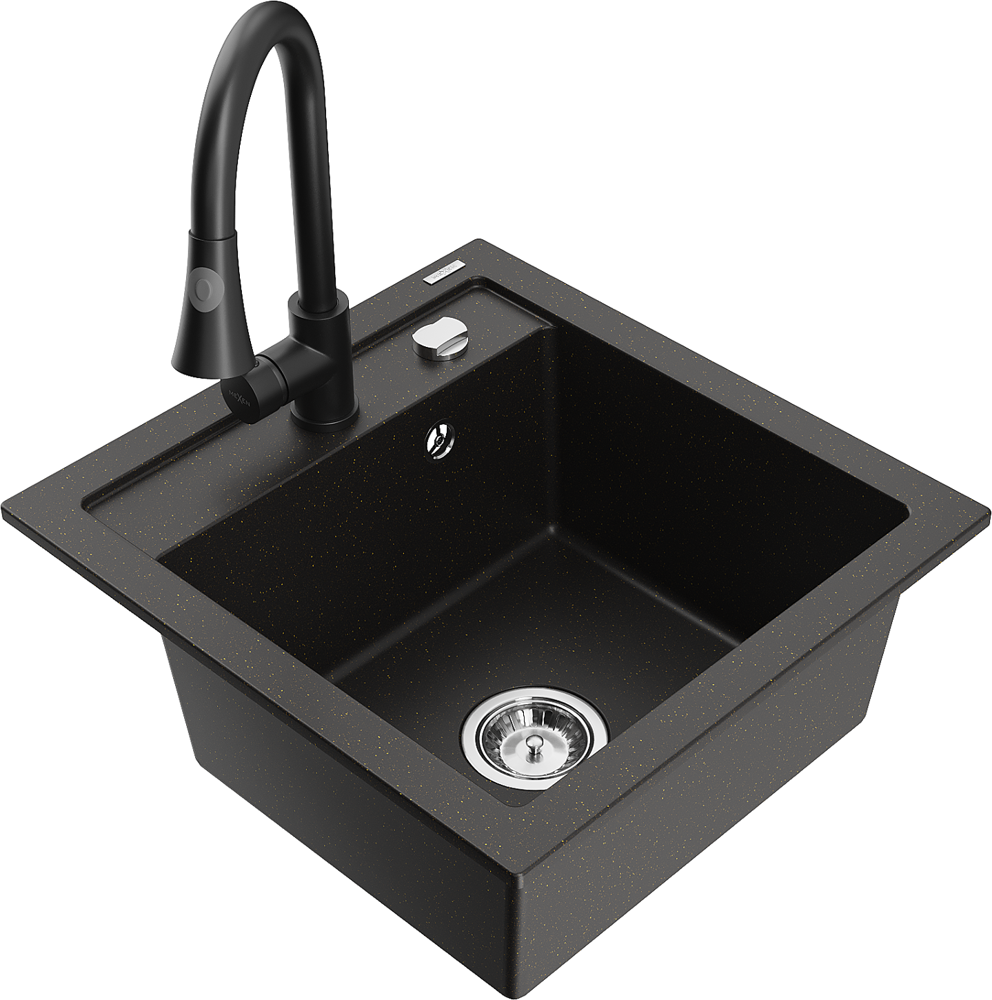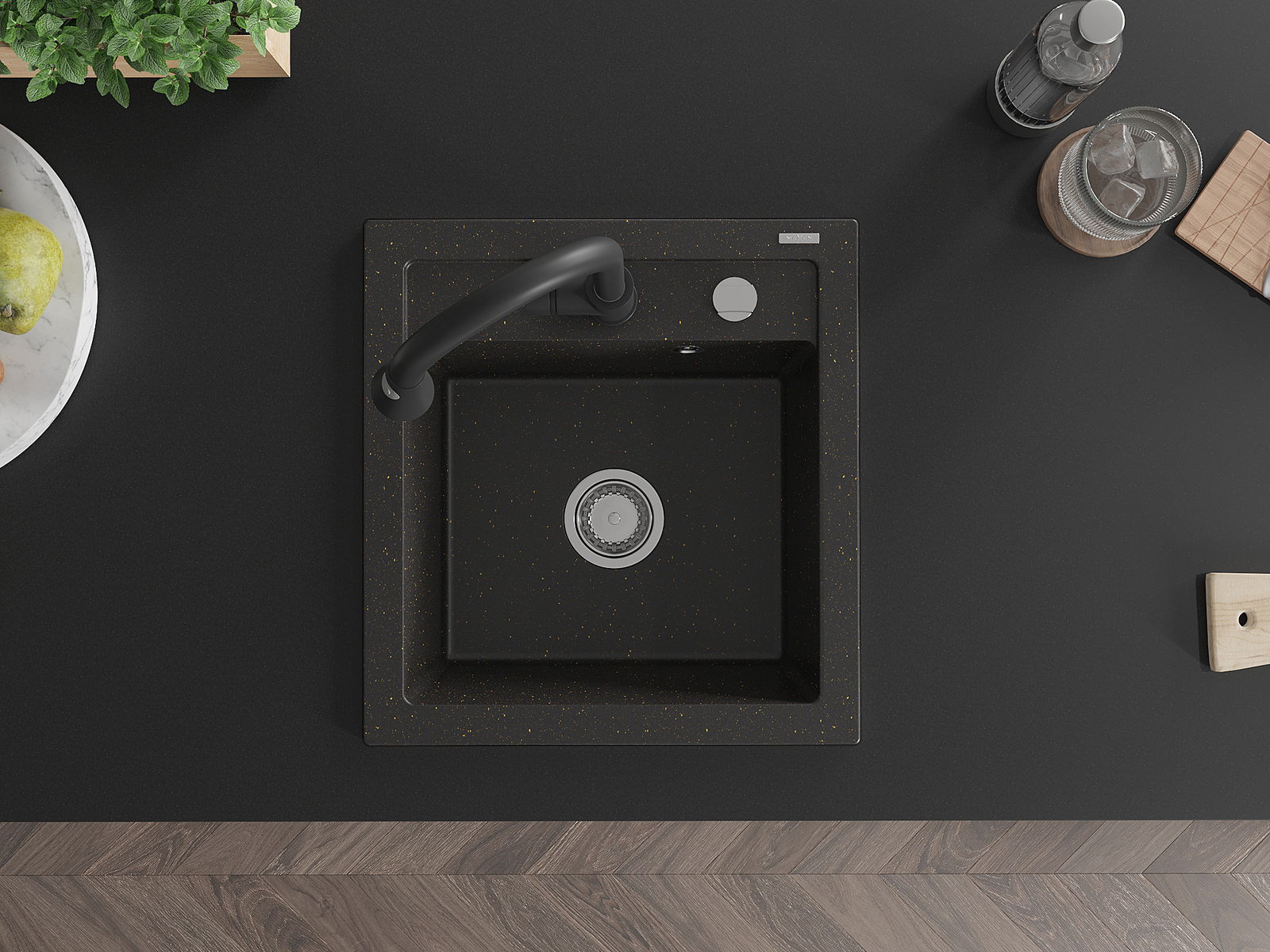 Mexen Vito granitový dřez s 1 komorou a kuchyňskou baterií Elia, černý/zlatý metalik - 6503-75-670101-70