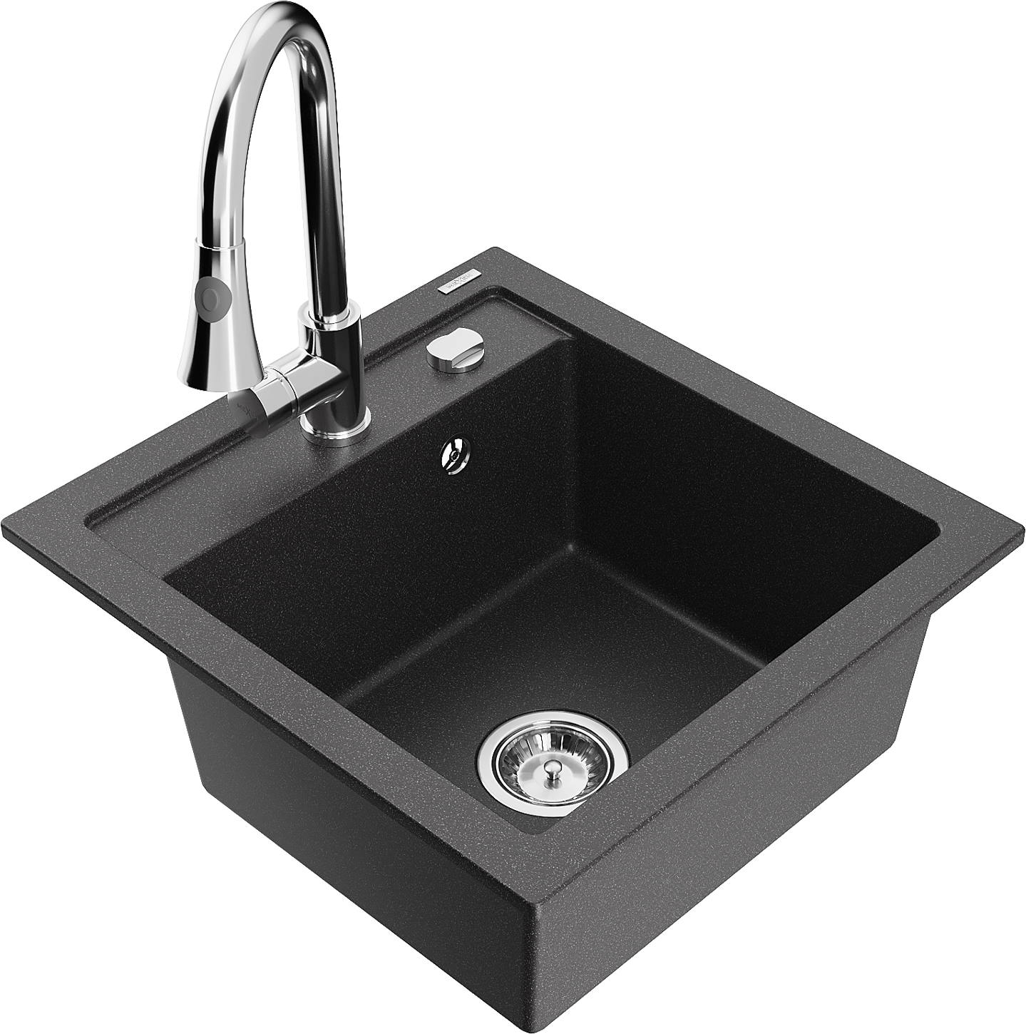 Mexen Vito granitový dřez 1-komorový s kuchyňskou baterií Elia, černý bodkovaný - 6503-76-670101-00