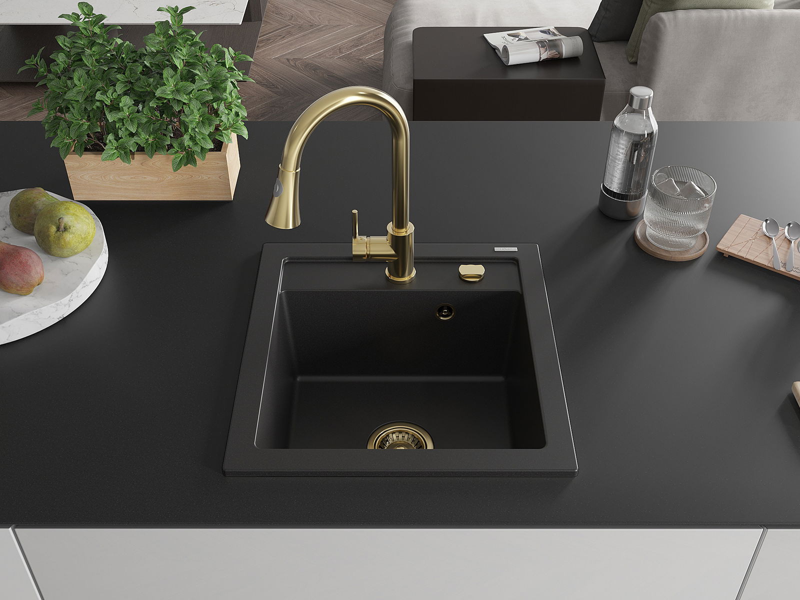 Mexen Vito granitový dřez 1-komorový s kuchyňskou baterií Elia, černý - 6503-77-670101-50