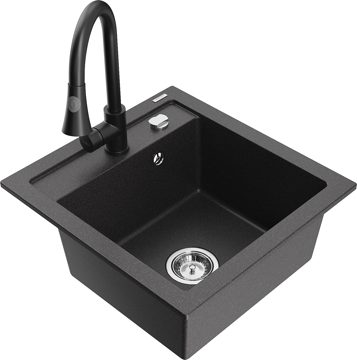 Mexen Vito granitový dřez 1-komorový s kuchyňskou baterií Elia, černý skvrnitý - 6503-76-670101-70