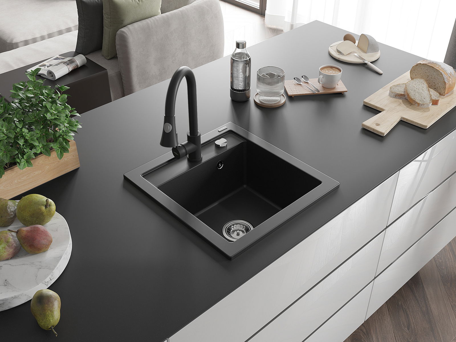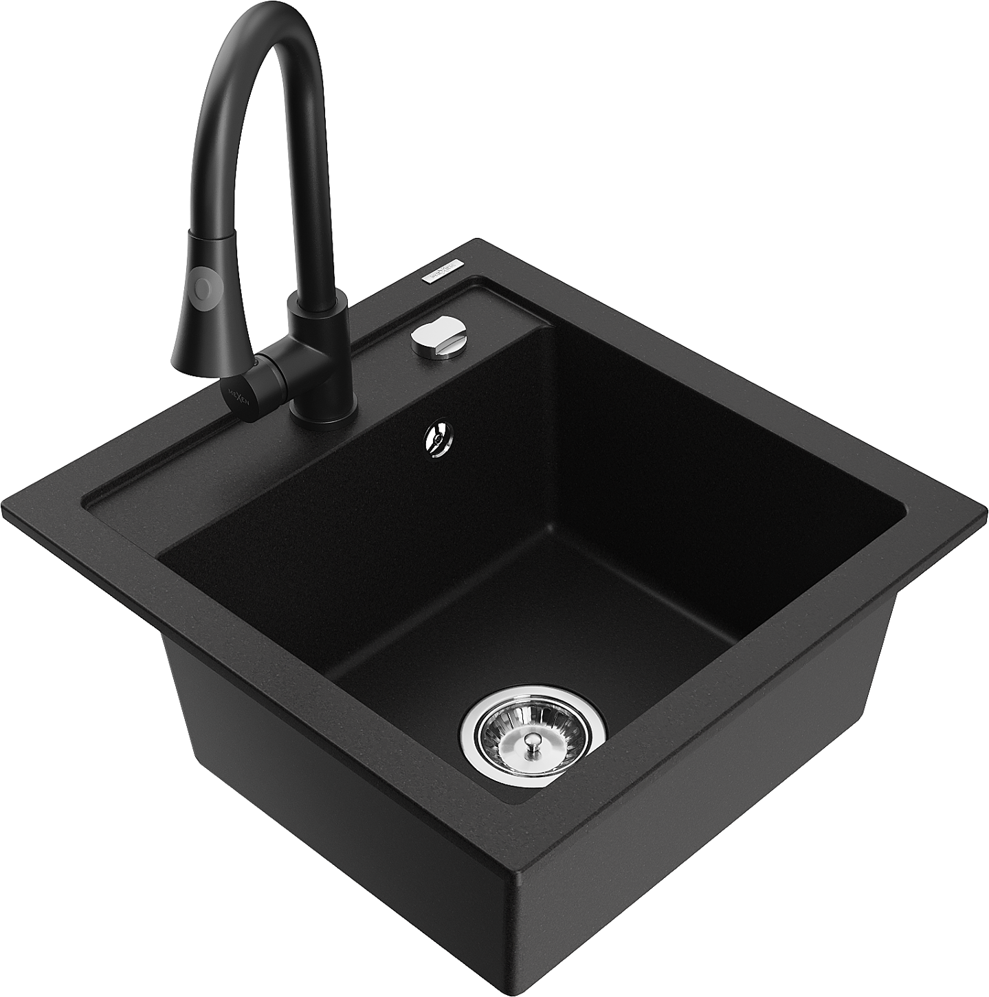 Mexen Vito granitový dřez 1-komorový s kuchyňskou baterií Elia, černý - 6503-77-670101-70