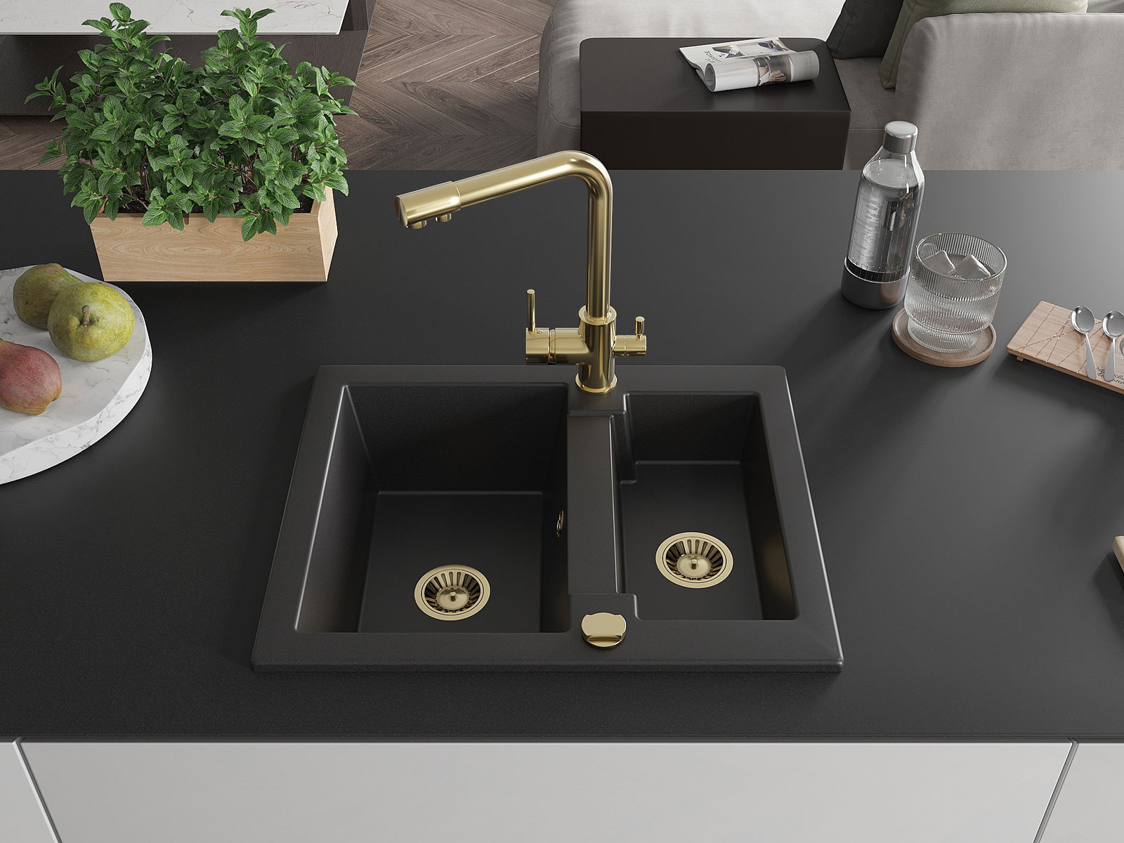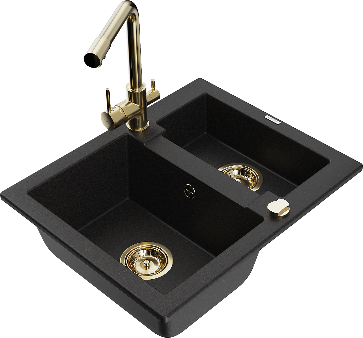 Mexen Carlos granitový dřez 1,5komorový s kuchyňskou baterií Duero, černý - 6518-77-671600-50