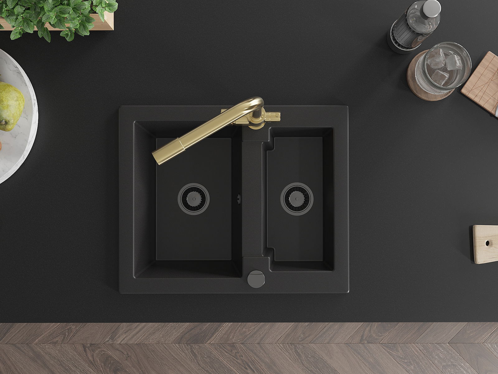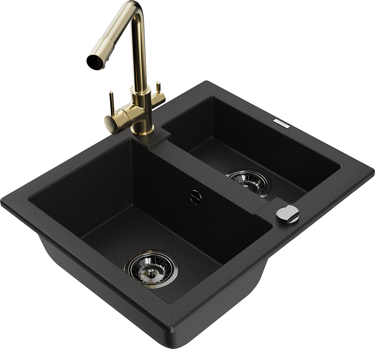 Mexen Carlos granitový dřez s 1,5 komorou a kuchyňskou baterií Duero, černý - 6518-77-671600-50-B