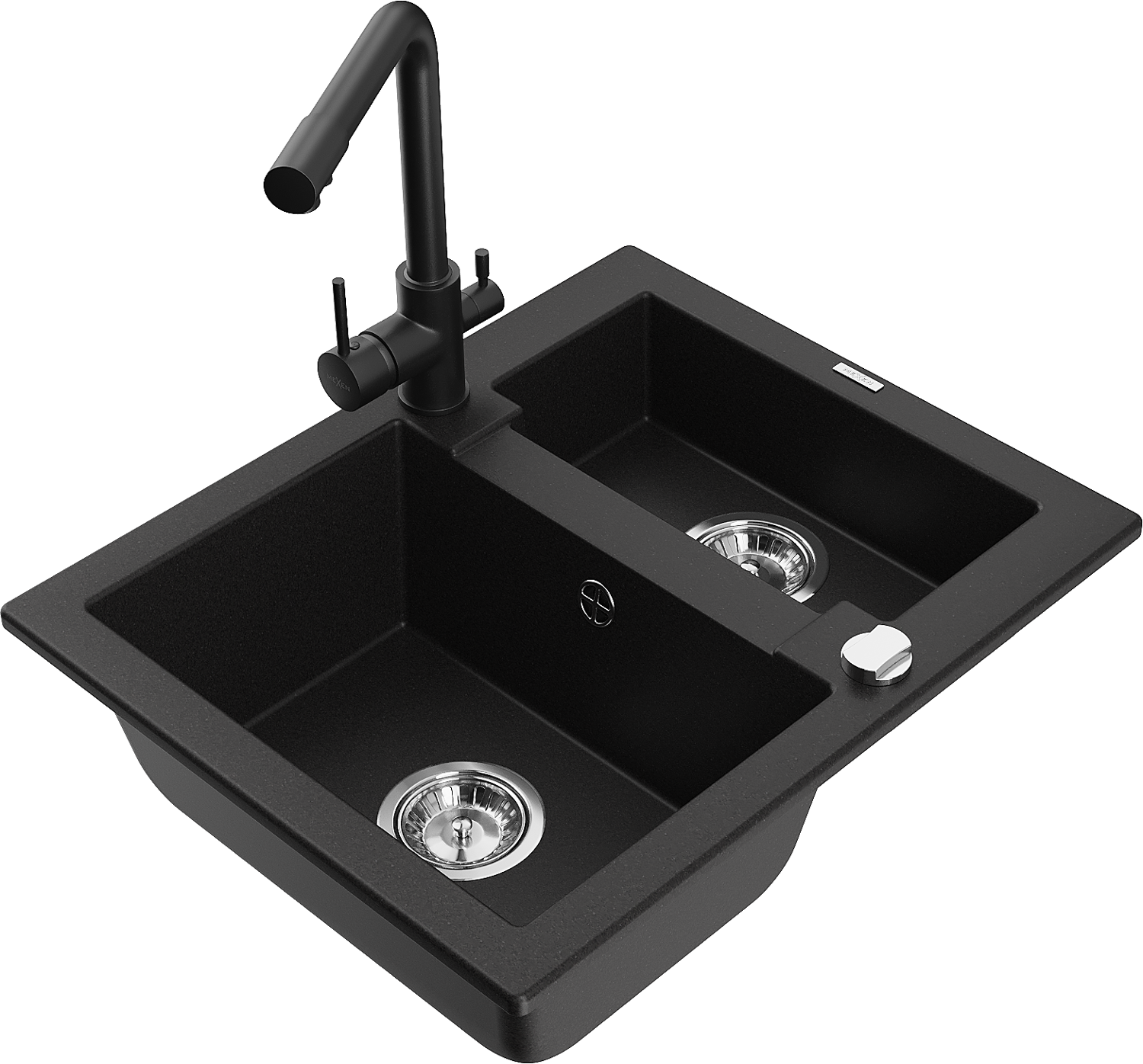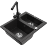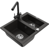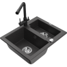 Mexen Carlos granitový dřez 1,5-komorový s kuchyňskou baterií Duero, černý - 6518-77-671600-70