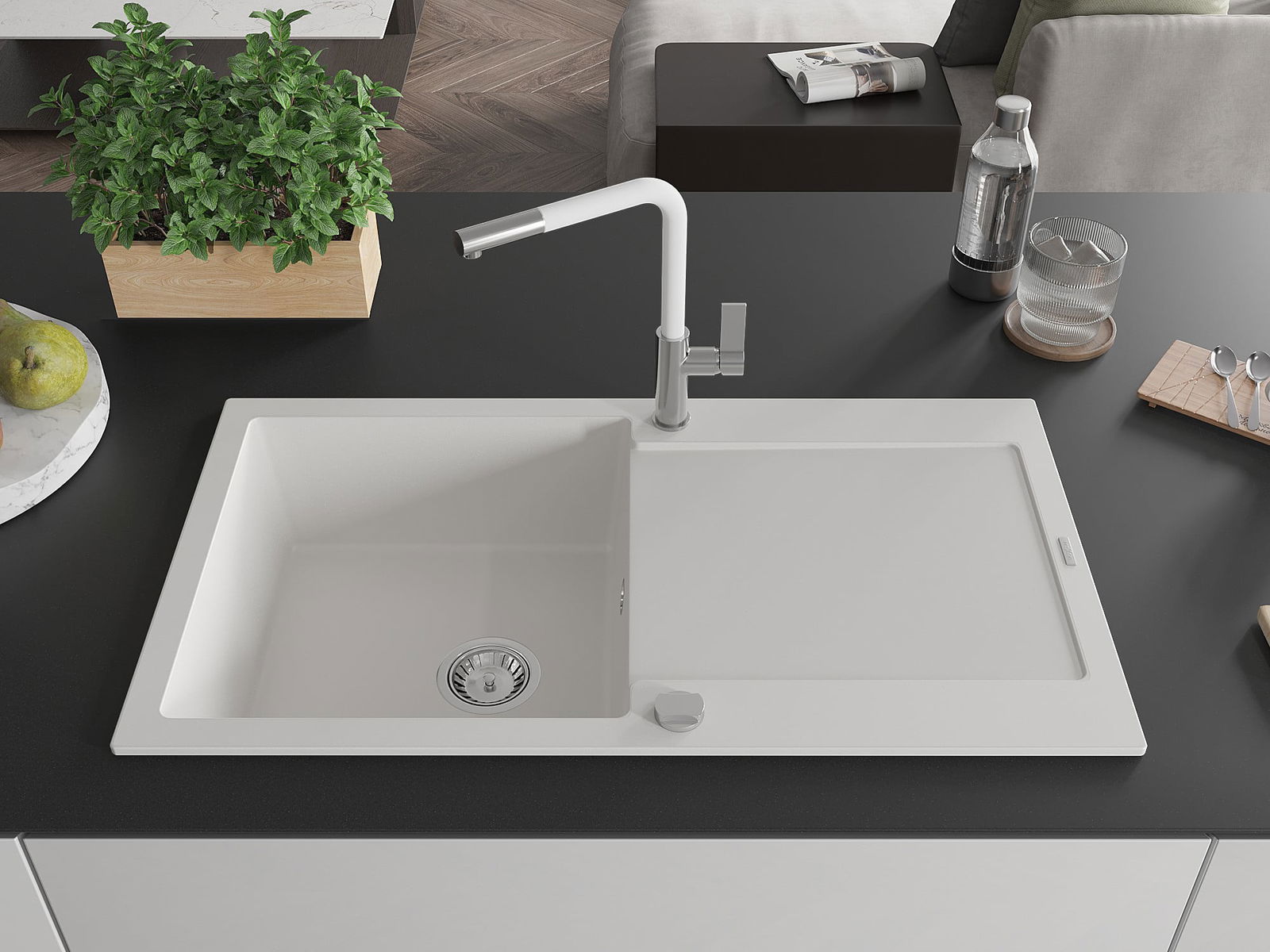 Dřez byl vyroben z vysoce kvalitního granitu. Představuje elegantní a především praktický doplněk každé kuchyně, bez ohledu na její styl. Vysoká kvalita a trvanlivost granitu zajišťují dlouholeté používání.