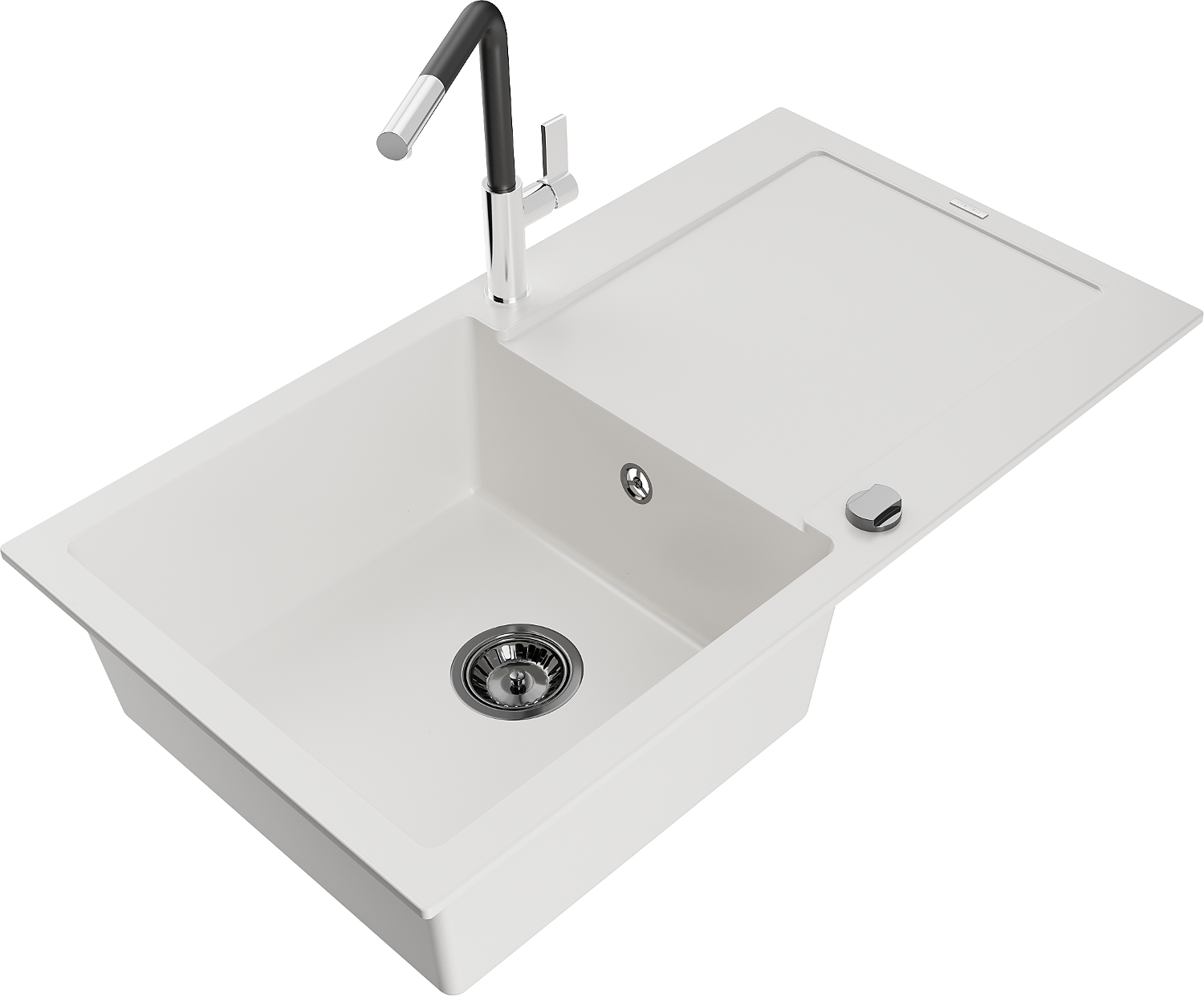 Povrch dřezu je odolný proti skvrnám a zabarvení, což usnadňuje jeho čištění a zachovává jeho barvu po dlouhou dobu používání. Estetický a praktický doplněk každé kuchyně.