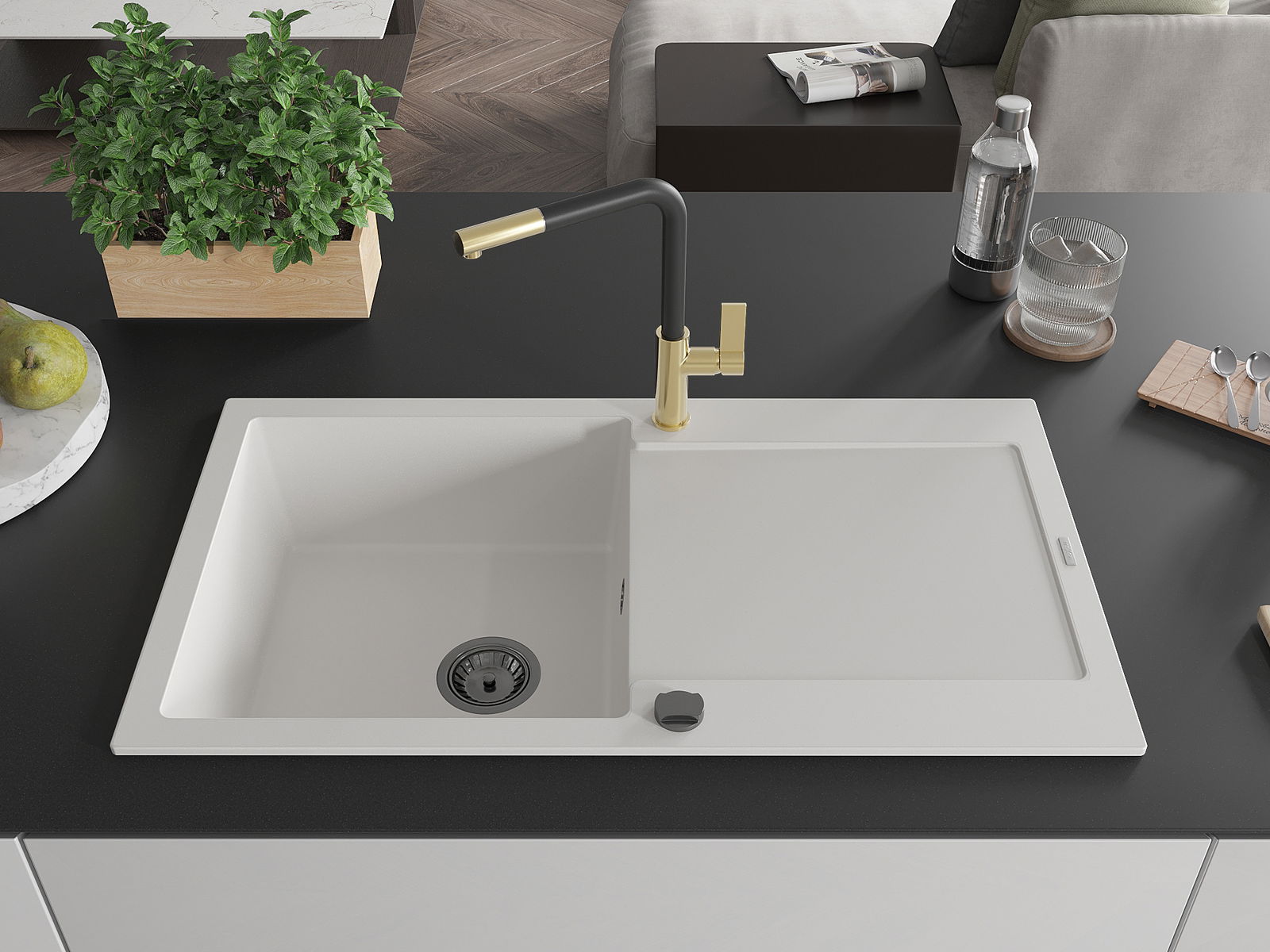 Dřez byl vyroben z vysoce kvalitního granitu. Představuje elegantní a především praktický doplněk každé kuchyně, bez ohledu na její styl. Vysoká kvalita a trvanlivost granitu zajišťují dlouholeté používání.