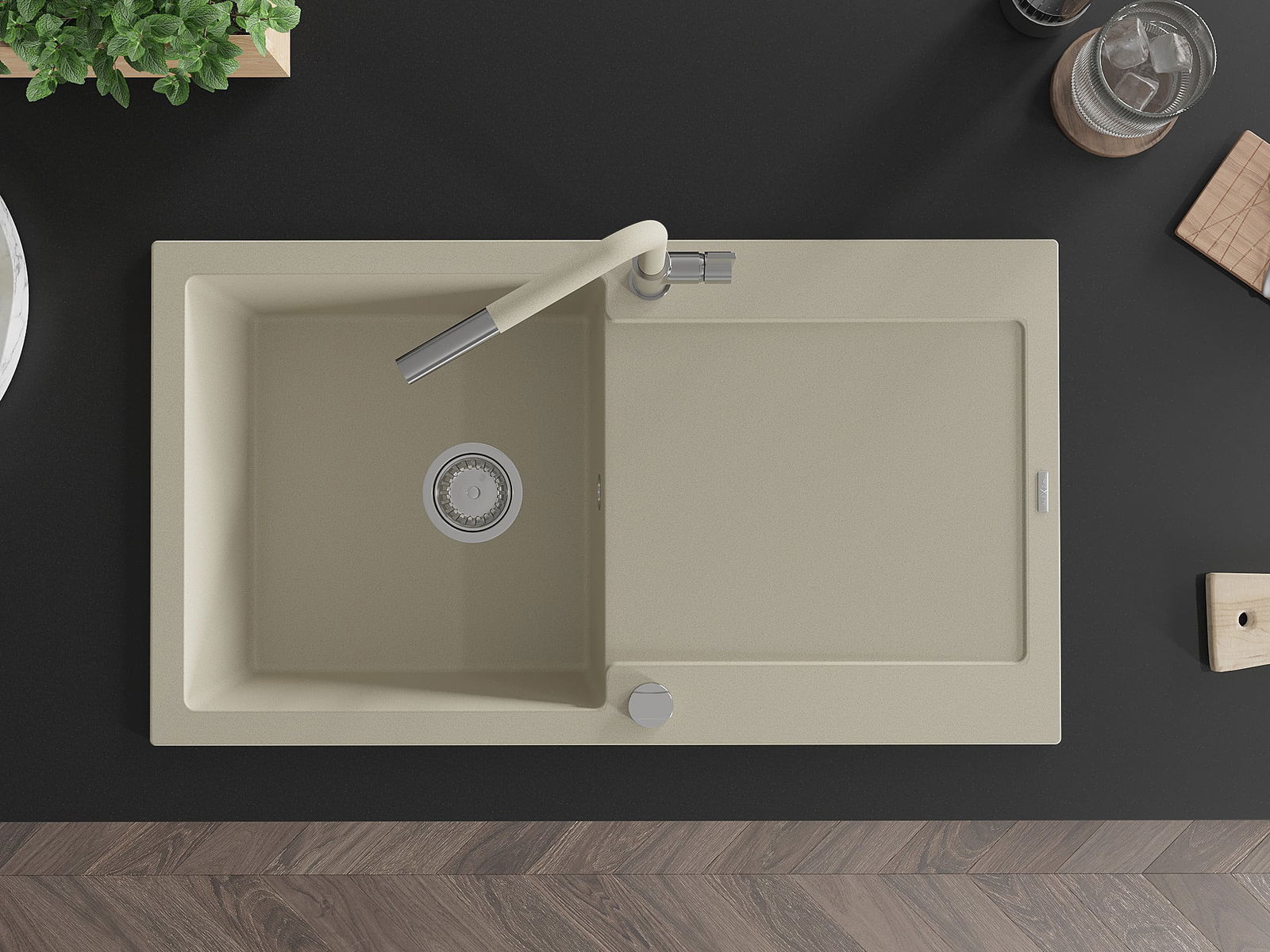 Dřez byl vyroben z vysoce kvalitního granitu. Představuje elegantní a především praktický doplněk každé kuchyně, bez ohledu na její styl. Vysoká kvalita a trvanlivost granitu zajišťují dlouholeté používání.