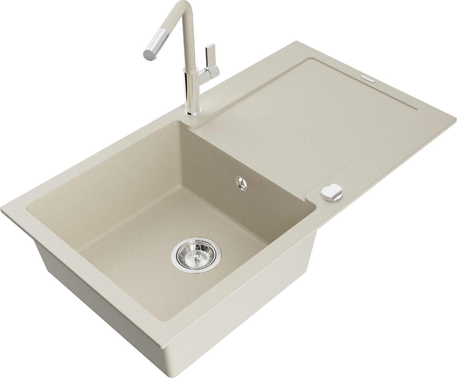 Povrch dřezu je odolný proti skvrnám a zabarvení, což usnadňuje jeho čištění a zachovává jeho barvu po dlouhou dobu používání. Estetický a praktický doplněk každé kuchyně.