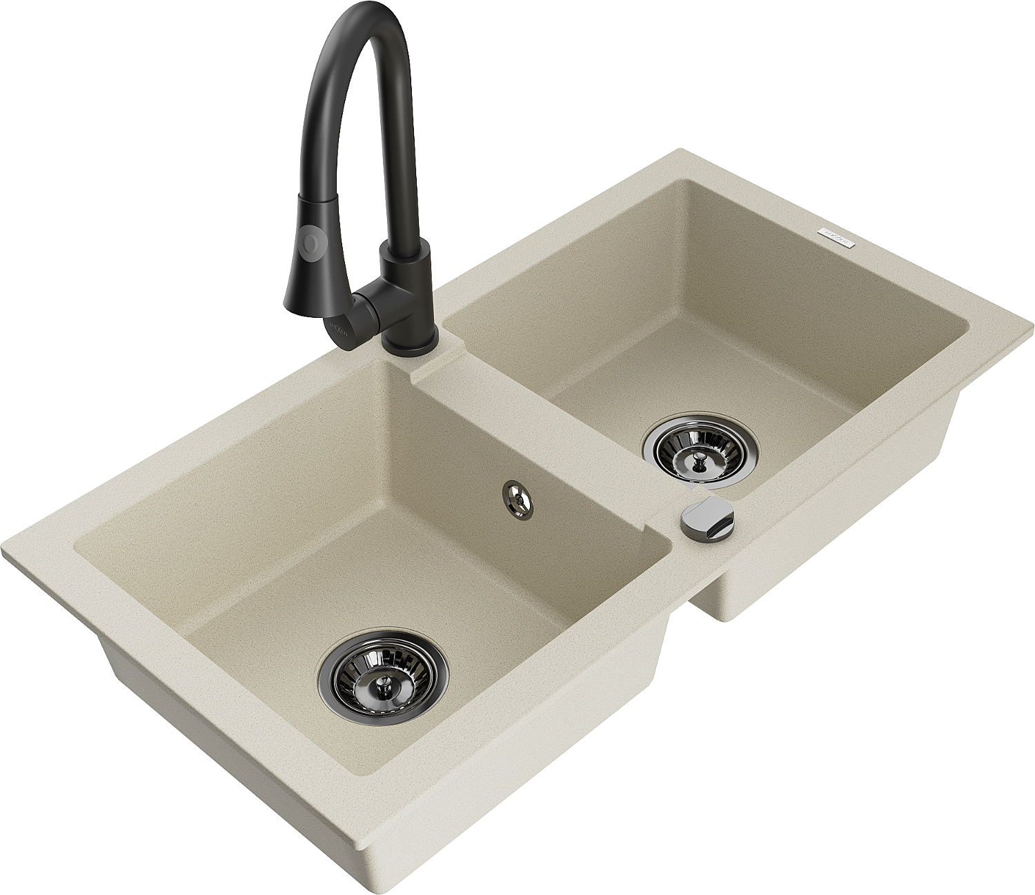 Mexen Mario dvoukomorový granitový dřez s kuchyňskou baterií Elia, béžový - 6504-69-670101-70