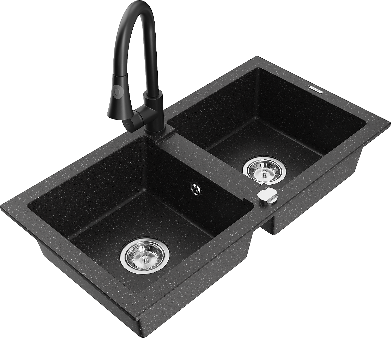 Mexen Mario žulový dřez dvoukomorový s kuchyňskou baterií Elia, černý/stříbrný metalický - 6504-73-670101-70