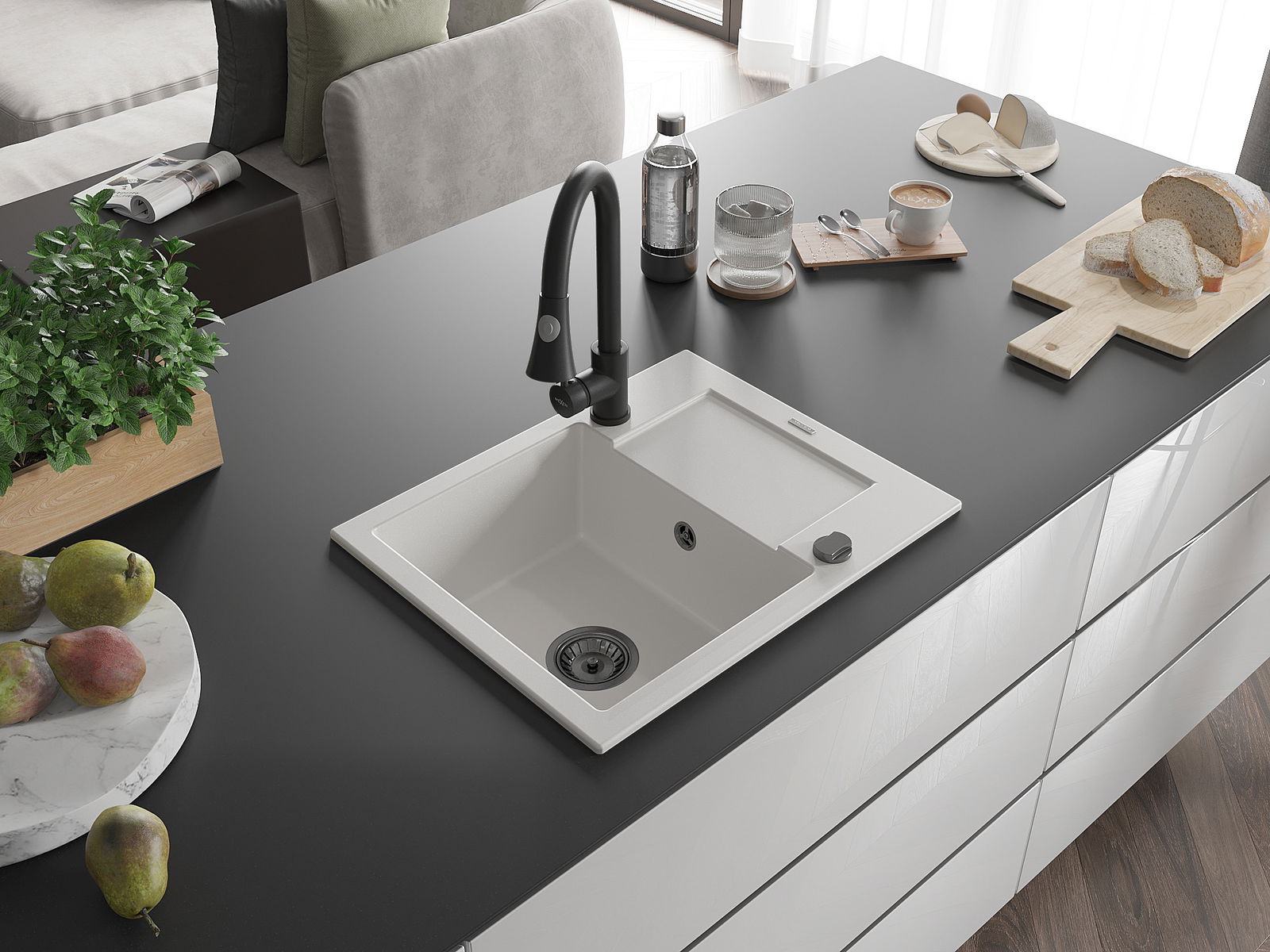Dřez byl vyroben z vysoce kvalitního granitu. Představuje elegantní a především praktický doplněk každé kuchyně, bez ohledu na její styl. Vysoká kvalita a trvanlivost granitu zajišťují dlouholeté používání.
