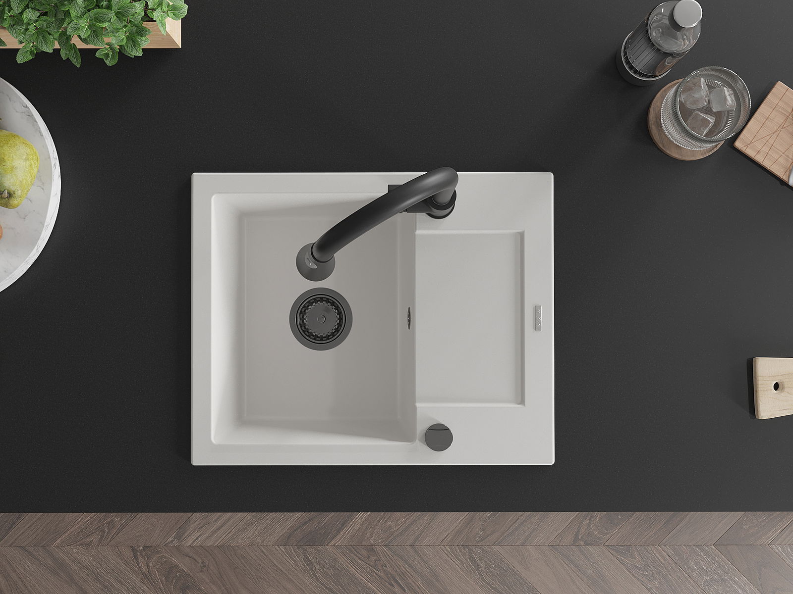 Povrch dřezu je odolný proti skvrnám a zabarvení, což usnadňuje jeho čištění a zachovává jeho barvu po dlouhou dobu používání. Estetický a praktický doplněk každé kuchyně.