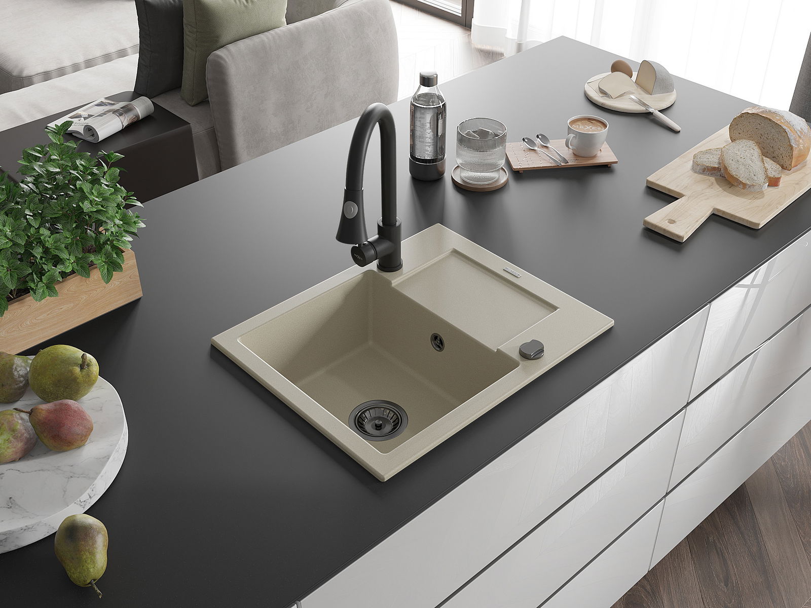 Dřez byl vyroben z vysoce kvalitního granitu. Představuje elegantní a především praktický doplněk každé kuchyně, bez ohledu na její styl. Vysoká kvalita a trvanlivost granitu zajišťují dlouholeté používání.