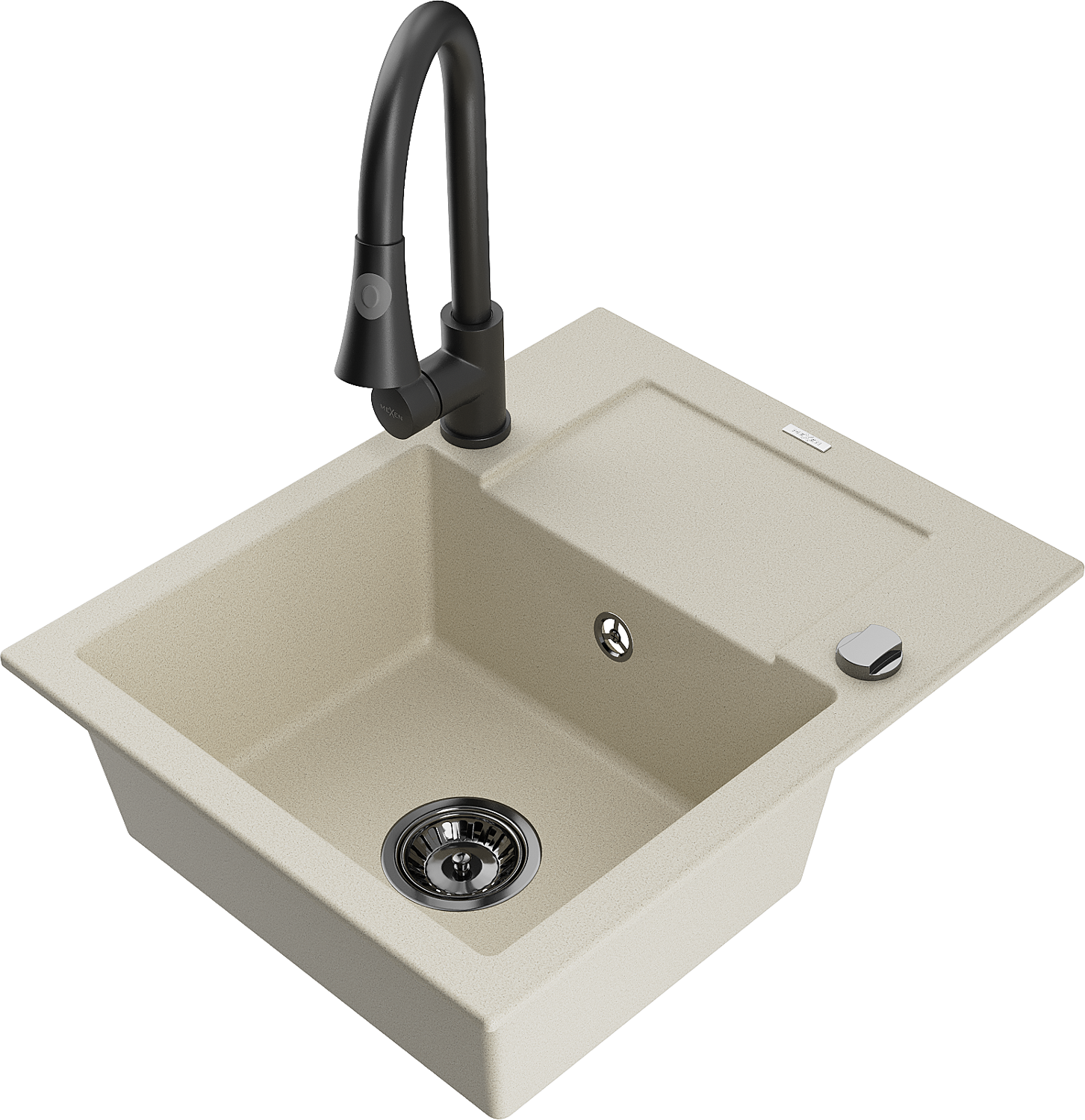Mexen Enzo granitový dřez 1-komorový s odkapávačem a kuchyňskou baterií Elia, béžový - 6506-69-670101-70