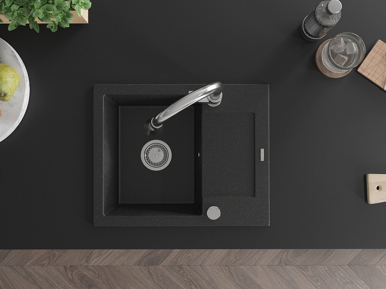 Dřez byl vyroben z vysoce kvalitního granitu. Představuje elegantní a především praktický doplněk každé kuchyně, bez ohledu na její styl. Vysoká kvalita a trvanlivost granitu zajišťují dlouholeté používání.