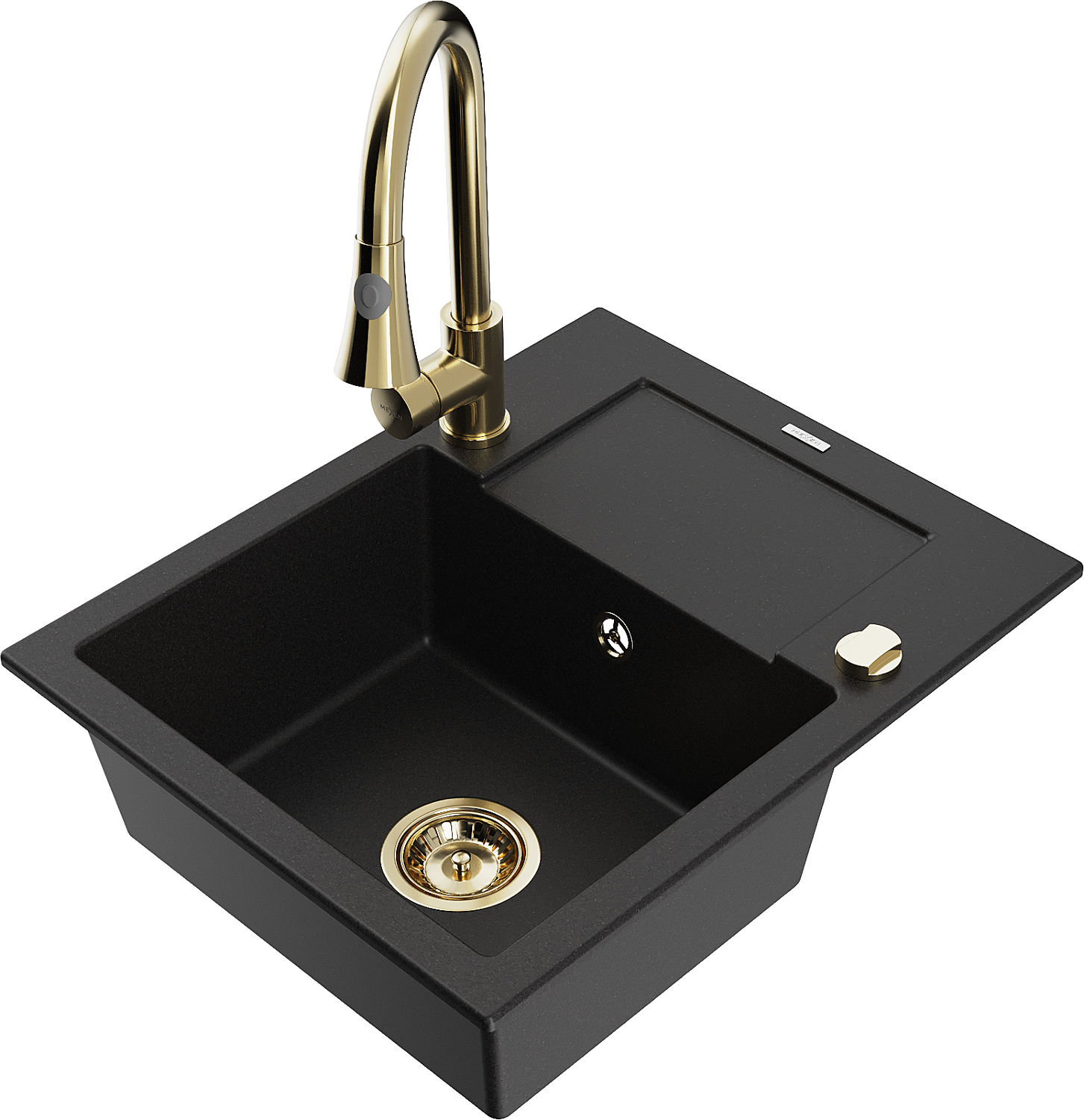 Mexen Enzo granitový dřez 1-komorový s odkapávačem a kuchyňskou baterií Elia, černý - 6506-77-670101-50