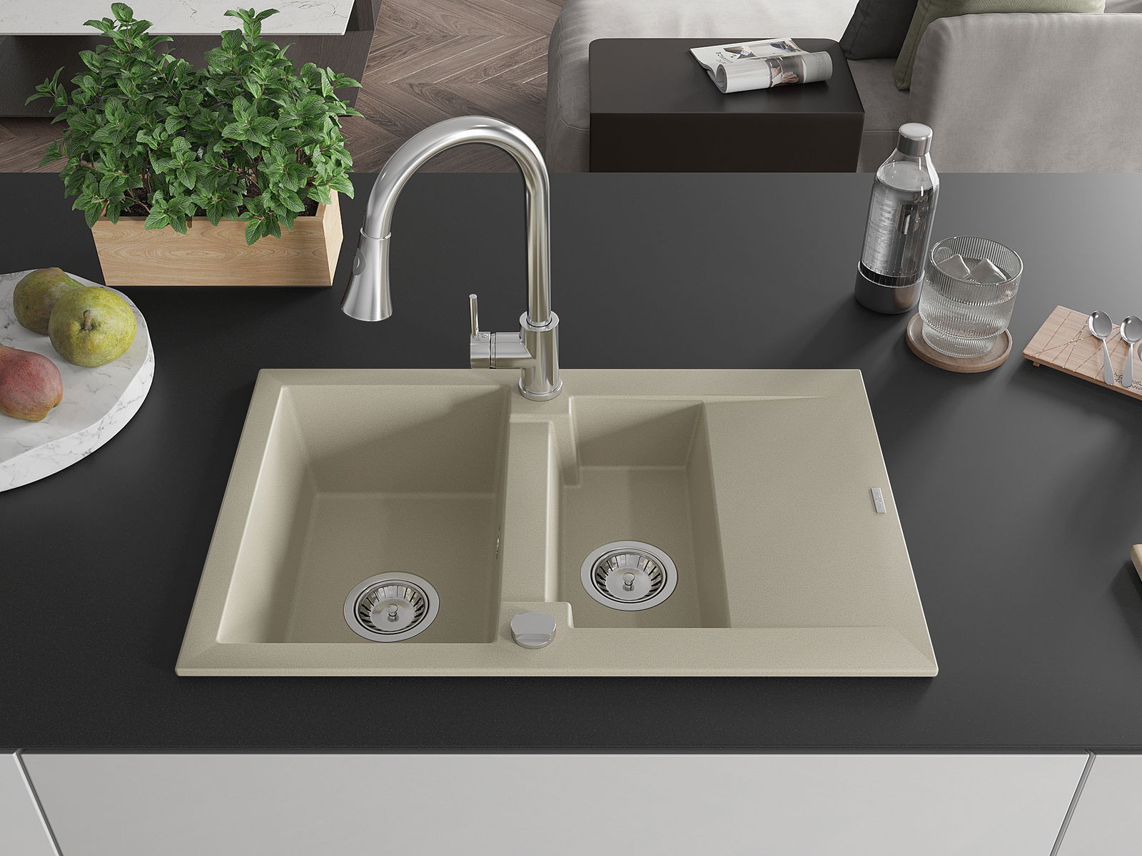 Dřez byl vyroben z vysoce kvalitního granitu. Představuje elegantní a především praktický doplněk každé kuchyně, bez ohledu na její styl. Vysoká kvalita a trvanlivost granitu zajišťují dlouholeté používání.