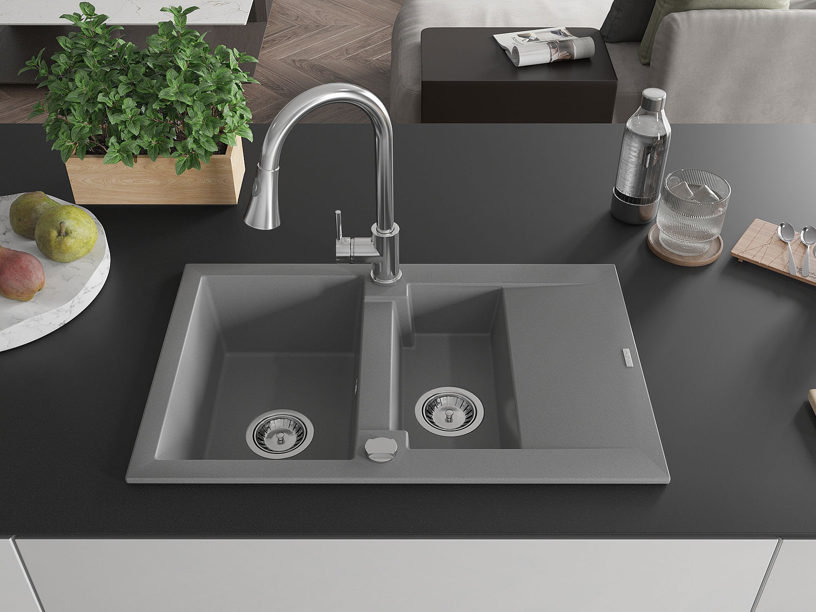 Dřez byl vyroben z vysoce kvalitního granitu. Představuje elegantní a především praktický doplněk každé kuchyně, bez ohledu na její styl. Vysoká kvalita a trvanlivost granitu zajišťují dlouholeté používání.
