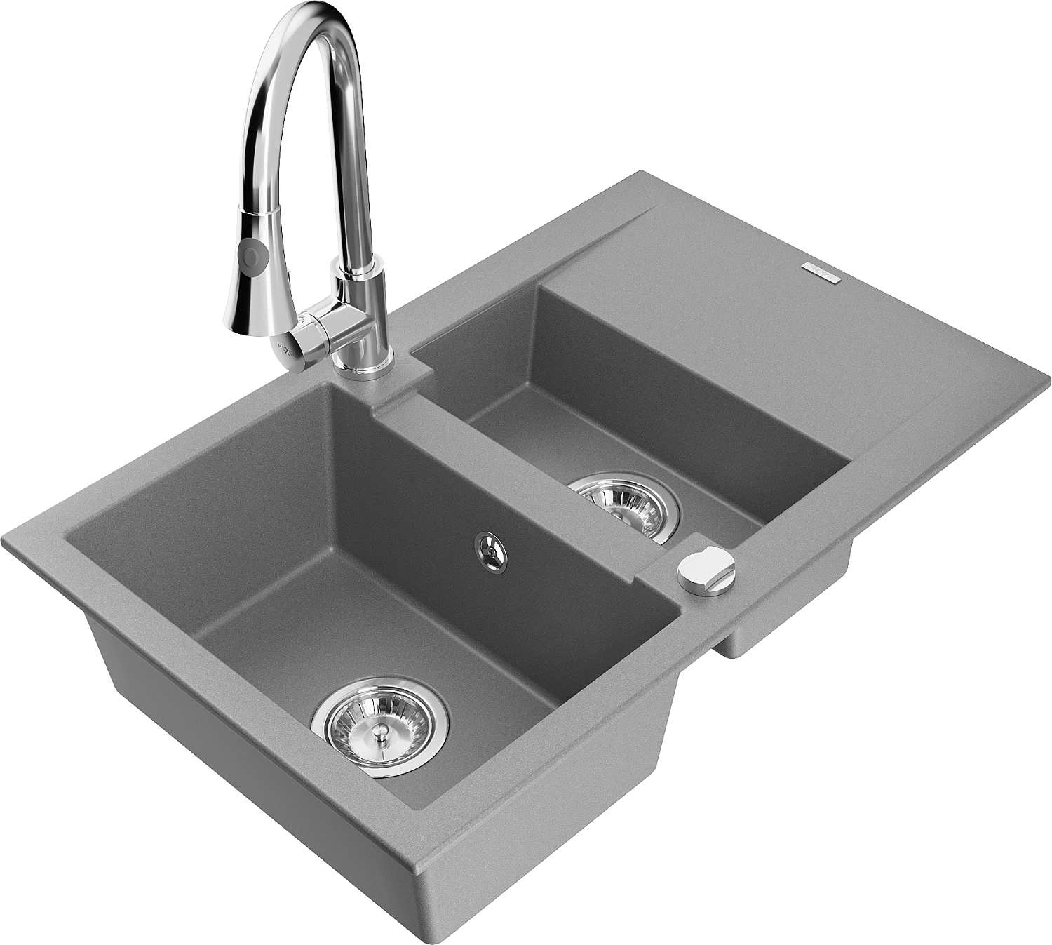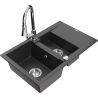 Mexen Gaspar granitový dřez 1,5-komorový s odkapávačem a kuchyňskou baterií Elia, šedý - 6507-71-670101-00