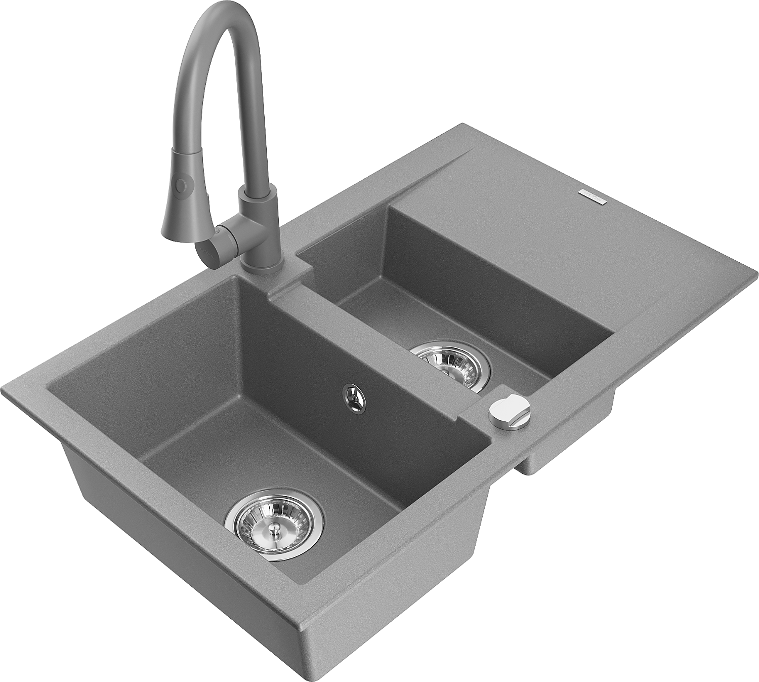 Mexen Gaspar granitový dřez 1,5-komorový s odkapávačem a kuchyňskou baterií Elia, šedý - 6507-71-670101-71