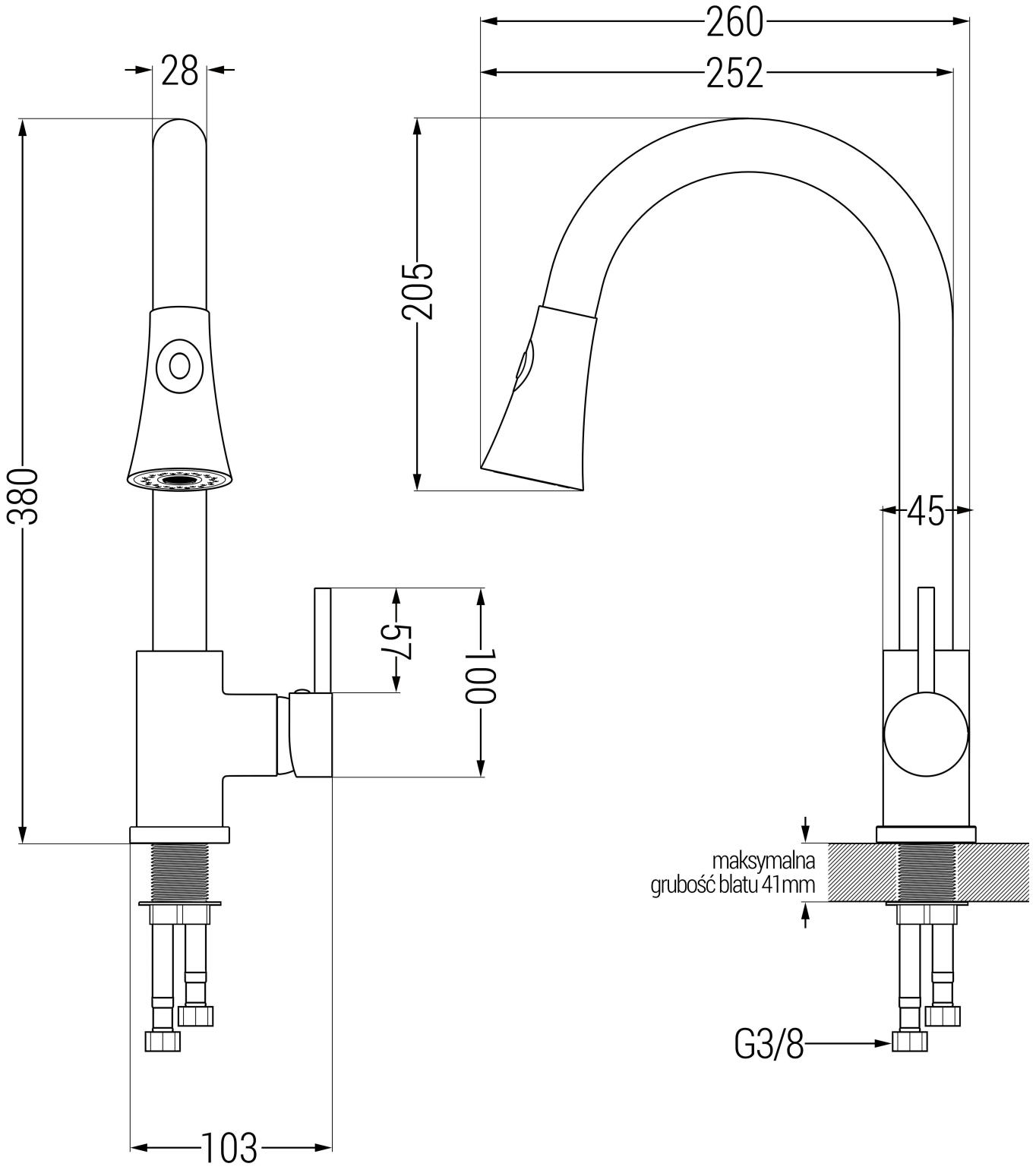 Baterie má 2 režimy práce: běžný a sprchový. Proud vody lze volně měnit a přizpůsobit individuálním potřebám. Tímto způsobem se mytí nádobí stane ještě snazším, pohodlnějším a efektivnějším.