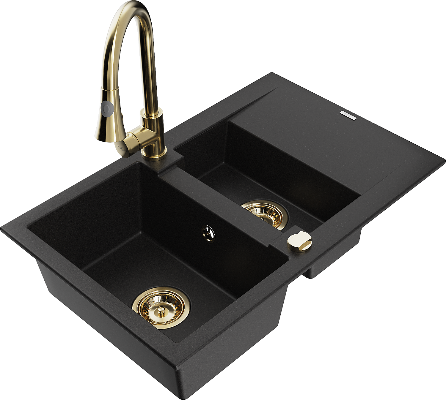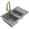 Mexen Gaspar granitový dřez 1,5-komorový s odkapávačem a kuchyňskou baterií Elia, černý - 6507-77-670101-50