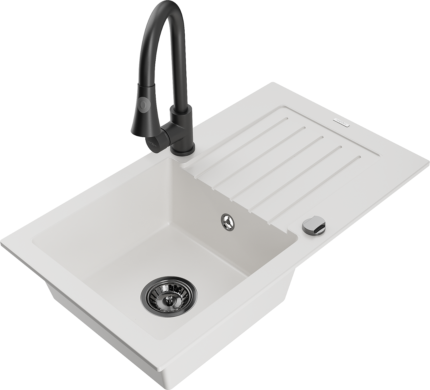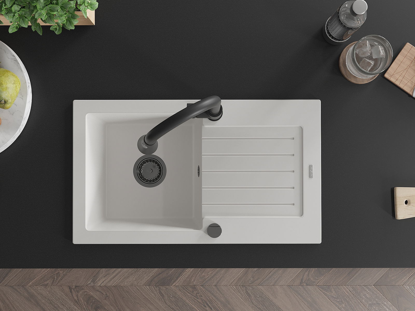 Povrch dřezu je odolný proti skvrnám a zabarvení, což usnadňuje jeho čištění a zachovává jeho barvu po dlouhou dobu používání. Estetický a praktický doplněk každé kuchyně.
