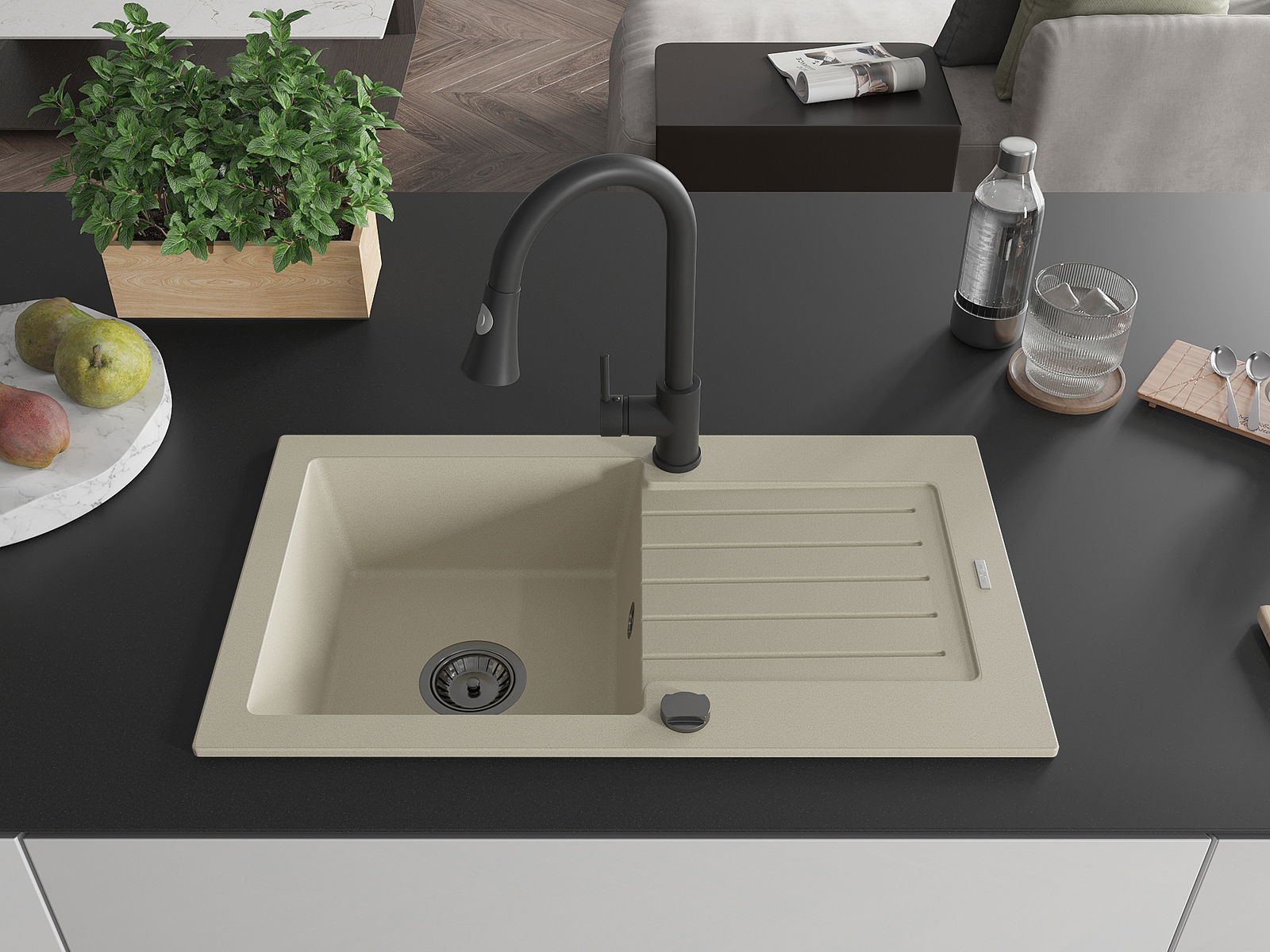 Dřez byl vyroben z vysoce kvalitního granitu. Představuje elegantní a především praktický doplněk každé kuchyně, bez ohledu na její styl. Vysoká kvalita a trvanlivost granitu zajišťují dlouholeté používání.