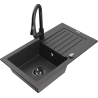 Mexen Pablo granitový dřez 1-komorový s odkapávačem a kuchyňskou baterií Elia, černý/stříbrný metalik - 6510-73-670101-70-B